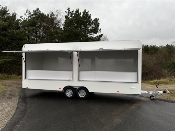 Ny trailer › Mobile salgsenheder › Salgsvogne Aeroline 622 salgsvogn m/skab og vask NU 1Stk 131.125,00 DKK Tilkøb nummerplademed EU symbol uden EU symbol 131.125,- Ikke på lager DKK inkl. moms (vis ekskl. moms) Varenummer: 10124 Book videofremvisningBestil leasingtilbud...eller ring på 86 81 81 64 Tekniske specifikationer Totalvægt 3000 Kg Last 1688 Kg Ladmål (indv.) 620 x 200 x 230 Bremser JA Hjul 14" Aksler 2 Stk. Produktfordele Præsentabel prisstærk salgsvogn i aerodynamisk design Stort indretningspotentiale Velisoleret og langtidsholdbar salgsvogn, med sandwichkonstruerede og isolerede sider og tag (30 mm) beklædt med rengøringsvenlig hvid glasfiber ind- og udvendig Kraftig finérbund (18 mm) belagt med pæn linoleum med træstruktur Afrundet front og optimeret brændstoføkonomi 2 salgsklapper, der er nemme at åbne Bordplade ved salgsåbning i pæn hvid laminat Hylder over og under salgsklap til opbevaring Skab (100 cm) m/dobbeltvask med koldt og varmt vand 230 V lysarmatur i loft 2 stikkontakter Vil du gerne eje en salgsvogn der bliver husket? Så få den speciallavet af Selandia – Vi har styr på det hele! Find de bedste tilbud vi har på kvalitets salgsvogne her. Produktbeskrivelse Med salgsvogn 622 får du en præsentabel prisstærk salgsvogn, der i modsætning til den gængse salgsvogn har to salgsåbninger - en salgsåbning i den ene langside og en salgsåbning i bagenden. Funktionel mobil salgsvogn, der er ideel til deltagelse på messer, markeder og andre former for turné, som kræver en mobil salgsløsning. Fremstillet i glasfiber med afrundet tag, der giver et flot strømlinet design, og samtidig også en forbedret brændstoføkonomi. En flot salgsvogn med et stort indretningspotentiale. Bemærk indregistrering af trailer koster 790 kr. inkl. moms. Aeroline 622 salgsvogn m/skab og vask 131.125,- DKK - + 131.125,- DKK inkl. moms (vis ekskl. moms) Læg i kurv Se alternative modeller 93.995,- DKKAeroline 301 salgsvogn m/2 salgsklapper 84.995,- DKKAeroline 301 salgsvogn m/skab og vask SÆRTILBUDFØR 74.990,- DKKNU 69.990,- DKKAeroline 250 salgsvogn m/skab og vask 36.850,- DKKTF 250-750 cargotrailer m/døre og 2 sideklapper SÆRTILBUDFØR 120.995,- DKKNU 110.995,- DKKAeroline 522 salgsvogn m/skab og vask 129.995,- DKKAeroline 523 salgsvogn m/skab og vask 93.995,- DKK Aeroline 301 salgsvogn m/2 salgsklapper 84.995,- DKK Aeroline 301 salgsvogn m/skab og vask FØR 74.990,- DKKNU 69.990,- DKK Aeroline 250 salgsvogn m/skab og vask 36.850,- DKK TF 250-750 cargotrailer m/døre og 2 sideklapper FØR 120.995,- DKKNU 110.995,- DKK Aeroline 522 salgsvogn m/skab og vask 129.995,- DKK Aeroline 523 salgsvogn m/skab og vask Nyttig viden Finansieringsløsninger erhvervGuide til køb af salgsvognMobile fødevareenhederIndretning af salgsvognHastighed med trailerTrailerkørekort?Kørsel med trailerBrugsvejledning salgsvognForsikring af trailerTempo 100 godkendelse til trailerVægtafgift på trailer