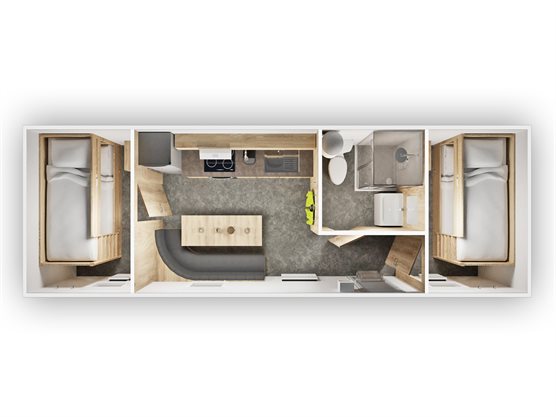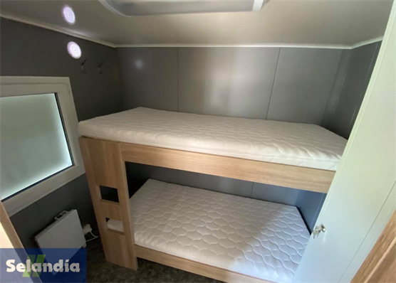 Ny trailer › Mandskabsvogn › Beboelsesvogn 8344 beboelsesvogn New Line 4 pers NU 1Stk 269.995,00 DKK Tilkøb nummerplademed EU symbol uden EU symbol 269.995,- Ikke på lager DKK inkl. moms (vis ekskl. moms) Varenummer: 11036 Book videofremvisningBestil leasingtilbud...eller ring på 86 81 81 64 Tekniske specifikationer Totalvægt 2700 kg Last 161 kg Ladmål (indv.) 813x237x212 cm Bremser Ja Hjul 13" Aksler 2 Produktfordele 2 soverum med etagesenge samt klædeskab og knagerække Spisebord 150 x 80 Vinkelbænk Køkken med 4 kogeplader, ovn, stålvask og køleskab Toiletrum m. vandskyllende toilet m/kværn og håndvask og brusebad med koldt og varmt vand (30 liters varmtvandsbeholder) Knagerække 13 stk. 230 V - 18 stik Lysarmaturer i loft - 4 stk. Elvarme 2000 W - 3 stk. Elvarme 500 W - 1 stk. Dør m/3-punkts lås Vinduer - 3 stk. Galvaniseret trappetrin Udluftningsventil i alle rum Slange til vandtilslutning og afløb samt elkabler til 230 V CE Produktbeskrivelse Beboelsesvogn model 8344 New Line er en funktionel beboelsesvogn med helt ny indretning i et lyst og moderne design. Vognen er udstyret med to topersoners soverum m/etagesenge, køkken/alrum m/køkken samt spiseplads med vinkelbænk, samt toiletrum m/toilet, håndvask og bruseniche. Beboelsesvognen er fremstillet i sandwichkonstruerede isolerede coatede stålsider, der beskytter mod korrosion og sikrer lang holdbarhed. Døren er lavet med 3-punktslås, hvilket sikrer ekstra styrke mod indbrud. Bemærk indregistrering af trailer koster 790 kr. inkl. moms. Ekstraudstyr - Sider og tag er sandwichkonstrueret, isoleret og belagt med sølvgrå coatede stålplader både indvendig og udvendig. Vægge og tag er 50 mm tykke - Bunden er sandwich konstrueret med en tykkelse på 60 mm og belagt med linoleum - Galvaniseret stålramme - AL-KO undervogn - Kuglekobling ISO 50 - 4 støtteben - Automatisk næsehjul 8344 beboelsesvogn New Line 4 pers 269.995,- DKK - + 269.995,- DKK inkl. moms (vis ekskl. moms) Læg i kurv Kunder købte også 590,- DKK Trailer nummerplade med EU-symbol (momsfri)200,- DKK Gebyr nr. plade