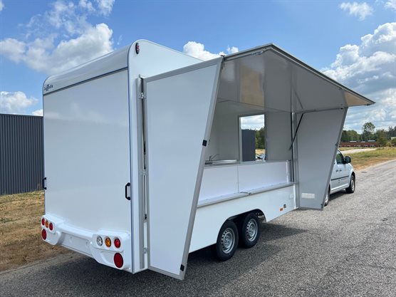 Ny trailer › Mobile salgsenheder › Salgsvogne Aeroline 421 salgsvogn med læskærme, skab, vask og bordplade på bagvæg NU 1Stk (FØR 132.995,00)117.995,00 DKK Tilkøb nummerplademed EU symbol uden EU symbol Konfigurér denne trailer Har du husket at købe… disse produkter? 400V 16A indtag med 5 stk. dobbelt 230V stikk. 6.062,50 DKK Sæbe- og papirdispenser 2.110,00 DKK Kølemontre inkl. montering 17.750,00 DKK Emhætte inkl. montering 23.625,00 DKK Kølevitrine m/7 beholdere inkl. montering 15.250,00 DKK Brødrister CT 280 15.625,00 DKK Friture - dobbelt bordmodel 32.812,50 DKK Garniturebox 3-rums SL 7005 4.510,00 DKK Garniturebox 5-delt SL 7010 6.662,50 DKK Garniturebox 5-delt SL 7050 6.462,50 DKK Hotdog holder EL 19040 568,75 DKK Flaskeholder EL 16090 1.818,75 DKK Kogekar CL 3016 R 8.543,75 DKK Løgautomat EL 11030 2.869,00 DKK Nyseskærm til pølserister 937,50 DKK Pølsetang 106,50 DKK Stænkskærm pølserister 2.485,00 DKK Tangkasse m/ombuk EL 19010 737,50 DKK Bakkamera m/montering 2.025,00 DKK 112 – Brandslukker m/montering 400,00 DKK Scandomestic Køleskab (126 Ltr.) - RFT126WE 2.499,00 DKK3.799,00 DKK Scandomestic Køle-fryseskab (107 Ltr.) - SKB 161 W 3.899,00 DKK Scandomestic Fryseskab (85 Ltr.) - FRT85WD 2.999,00 DKK3.995,00 DKK Scandomestic Kølemontre til Bord (100 Ltr.) - RTW 101 BE 4.999,00 DKK7.699,00 DKK Scandomestic Køleskab (111 Ltr.) - KK 152 E 3.329,00 DKK4.299,00 DKK Scandomestic Prof. Køleskab (145 Ltr.) - SK 145 E 5.499,00 DKK7.699,00 DKK Pølserister GL 6060 15.100,00 DKK Pølserister GL 6046 13.200,00 DKK Koblingslås kraftig 299,00 DKK Pandekageplade CRE 2 5.500,00 DKK Pandekageplade RM Castro 9.375,00 DKK Frituregryde 13 liter 2.499,00 DKK - + 400V 16A indtag med 5 stk. dobbelt 230V stikk. + 6.062,50 i - + Emhætte inkl. montering + 23.625,- i - + Friture - dobbelt bordmodel + 32.812,50 i - + Frituregryde 13 liter + 2.499,- i - + Scandomestic Fryseskab (85 Ltr.) - FRT85WD FØR: 3.995,- + 2.999,- i - + Garniturebox 3-rums SL 7005 + 4.510,- i - + Garniturebox 5-delt SL 7010 + 6.662,50 i - + Garniturebox 5-delt SL 7050 + 6.462,50 i - + Scandomestic Køle-fryseskab (107 Ltr.) - SKB 161 W + 3.899,- i - + Kølemontre inkl. montering + 17.750,- i - + Kølevitrine m/7 beholdere inkl. montering + 15.250,- i - + Scandomestic Kølemontre til Bord (100 Ltr.) - RTW 101 BE FØR: 7.699,- + 4.999,- i - + Scandomestic Køleskab (126 Ltr.) - RFT126WE FØR: 3.799,- + 2.499,- i - + Scandomestic Køleskab (111 Ltr.) - KK 152 E FØR: 4.299,- + 3.329,- i - + Scandomestic Prof. Køleskab (145 Ltr.) - SK 145 E FØR: 7.699,- + 5.499,- i - + Pandekageplade CRE 2 + 5.500,- i - + Pandekageplade RM Castro + 9.375,- i - + Brødrister CT 280 + 15.625,- i - + Hotdog holder EL 19040 + 568,75 i - + Flaskeholder EL 16090 + 1.818,75 i - + Kogekar CL 3016 R + 8.543,75 i - + Løgautomat EL 11030 + 2.869,- i - + Nyseskærm til pølserister + 937,50 i - + Pølsetang + 106,50 i - + Stænkskærm pølserister + 2.485,- i - + Tangkasse m/ombuk EL 19010 + 737,50 i - + Pølserister GL 6060 + 15.100,- i - + Pølserister GL 6046 + 13.200,- i - + Bakkamera m/montering + 2.025,- i - + 112 – Brandslukker m/montering + 400,- i - + Koblingslås kraftig + 299,- i - + Sæbe- og papirdispenser + 2.110,- i FØR 132.995,- 117.995,- Læg i kurvPå lager DKK inkl. moms (vis ekskl. moms) Varenummer: 10102 Book videofremvisningBestil leasingtilbud...eller ring på 86 81 81 64 Tekniske specifikationer Totalvægt 1300 kg Last 350 kg Ladmål (indv.) 421x200x230 cm Bremser Ja Hjul 13" Aksler 1 Produktfordele Eksklusiv prisstærk salgsvogn i aerodynamisk design Stort indretningspotentiale Velisoleret og langtidsholdbar salgsvogn, med sandwichkonstruerede og isolerede sider og tag (30 mm) beklædt med rengøringsvenlig hvid glasfiber ind- og udvendig Kraftig finérbund (18 mm) belagt med pæn linoleum med træstruktur Afrundet front og optimeret brændstoføkonomi 1 stor salgsklap, der er nem at åbne Bordplade for salgsåbning i pæn hvid laminat Bordplade på bagvæg 2 dobbelte skabe til opbevaring på bagvæggen Hylder over og under salgsklap til opbevaring 230 V lysarmatur i loft 2 stikkontakter Skab 100 cm. m/dobbeltvask med koldt og varmt vand Bliv inspireret af vores tidligere salgsvogne projekter. Se udvalget af klargjorte og salgsklare salgsvogne. Produktbeskrivelse Aeroline 421 er en super flot salgsvogn fremstillet i langtidsholdbar og rengøringsvenlig glasfiber med afrundet tag, der giver et flot strømlinet design, men også en forbedret brændstoføkonomi. Aeroline 421 har 1 stor salgsklap i den ene langside, bordplade ved salgsåbning og hylder til opbevaring over og under salgsklap samt skab på bagvæggen med vask med koldt og varmt vand samt. Denne variant af Aeroline 421 har desuden bordplade på hele bagvæggen. Aeroline 421 er en eksklusiv og funktionel mobil salgsvogn, der er ideel til deltagelse på messer, markeder og andre former for turné, som kræver en mobilt salgsløsning, der nemt kan flyttes fra sted til sted. Bemærk indregistrering af trailer koster 790 kr. inkl. moms. Aeroline 421 salgsvogn med læskærme, skab, vask og bordplade på bagvæg 117.995,- DKK - + 117.995,- DKK inkl. moms (vis ekskl. moms) Læg i kurv Se alternative modeller 93.995,- DKKAeroline 301 salgsvogn m/2 salgsklapper 84.995,- DKKAeroline 301 salgsvogn m/skab og vask SÆRTILBUDFØR 74.990,- DKKNU 69.990,- DKKAeroline 250 salgsvogn m/skab og vask 36.850,- DKKTF 250-750 cargotrailer m/døre og 2 sideklapper SÆRTILBUDFØR 109.875,- DKKNU 99.875,- DKKAeroline 421 salgsvogn m/skab og vask SÆRTILBUDFØR 120.995,- DKKNU 110.995,- DKKAeroline 522 salgsvogn m/skab og vask 129.995,- DKKAeroline 523 salgsvogn m/skab og vask 93.995,- DKK Aeroline 301 salgsvogn m/2 salgsklapper 84.995,- DKK Aeroline 301 salgsvogn m/skab og vask FØR 74.990,- DKKNU 69.990,- DKK Aeroline 250 salgsvogn m/skab og vask 36.850,- DKK TF 250-750 cargotrailer m/døre og 2 sideklapper FØR 109.875,- DKKNU 99.875,- DKK Aeroline 421 salgsvogn m/ska