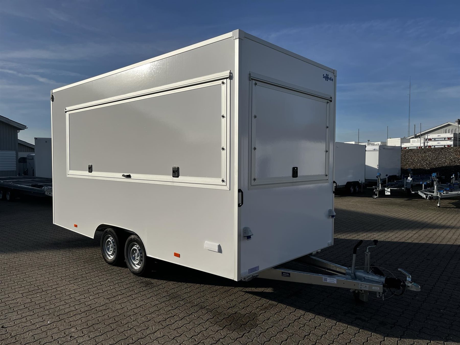 Ny trailer › Mobile salgsenheder › Salgsvogne Streetline udskænkningsvogn de-luxe NU 1Stk 159.995,00 DKK Tilkøb nummerplademed EU symbol uden EU symbol 159.995,- Læg i kurvPå lager DKK inkl. moms (vis ekskl. moms) Varenummer: 10116 Book videofremvisningBestil leasingtilbud...eller ring på 86 81 81 64 Tekniske specifikationer Totalvægt 2500 kg Last 1271 kg Ladmål (indv.) 453x210x230 cm Bremser Ja Hjul 13" Aksler 2 Produktfordele Introtilbud En vogn med mange muligheder! Find dig en kvalitets salgsvogn hos os! Vi har flere gode tilbud lige nu. Produktbeskrivelse Bemærk indregistrering af trailer koster 790 kr. inkl. moms Streetline udskænkningsvogn de-luxe 159.995,- DKK - + 159.995,- DKK inkl. moms (vis ekskl. moms) Læg i kurv Se alternative modeller SÆRTILBUDFØR 143.995,- DKKNU 103.995,- DKKVZ 465 udstillingsvogn 76.415,- DKKTP 360-2700 cargotrailer m/døre og stor sideklap FØR 143.995,- DKKNU 103.995,- DKK VZ 465 udstillingsvogn 76.415,- DKK TP 360-2700 cargotrailer m/døre og stor sideklap Nyttig viden Finansieringsløsninger erhvervForsikring af trailerTempo 100 godkendelse til trailerVægtafgift på trailerTrailerkørekort?Kørsel med trailerIndretning af salgsvogn