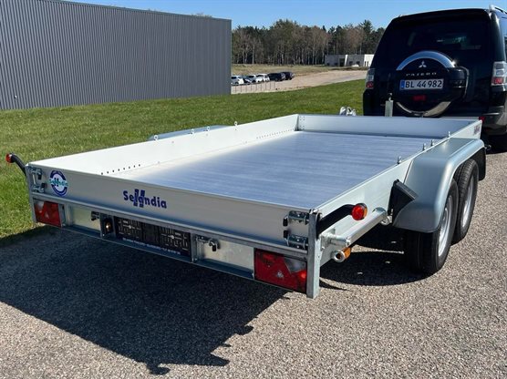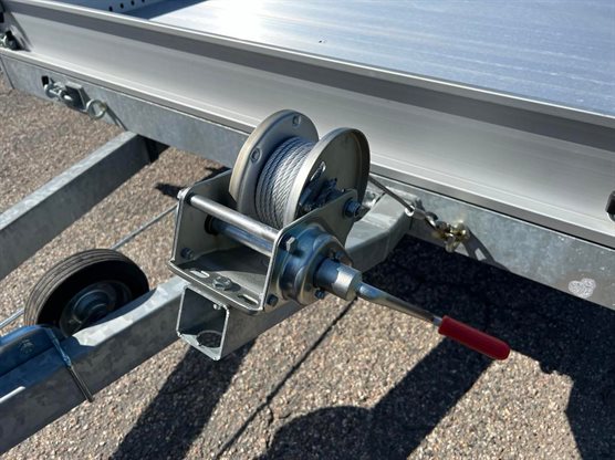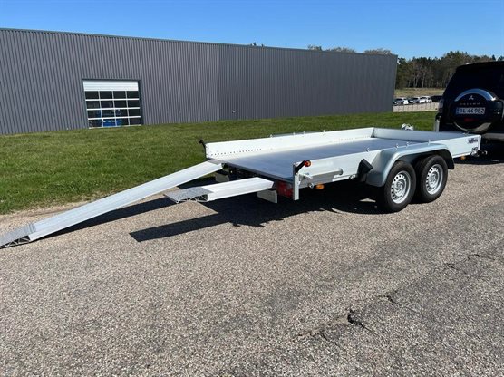 AMT 1500-340 er en robust aluminiumstrailer udformet til transport af biler eller andre køretøjer som f.eks. havemaskiner. Denne model har som standard indbyggede ramper og spil, hvilket letter arbejdet med af- og pålæsning. Bemærk trailerens lave egenvægt. |
