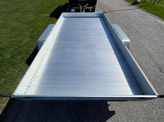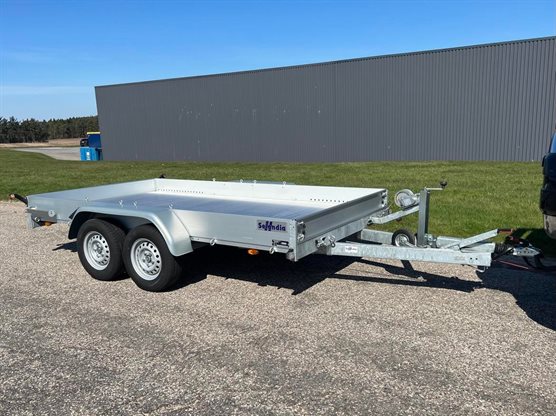 AMT 2500-340 er en robust aluminiumstrailer udformet til transport af biler eller andre køretøjer som f.eks. havemaskiner. Denne model har som standard indbyggede ramper og spil, hvilket letter arbejdet med af- og pålæsning. Bemærk trailerens lave egenvægt og lave læssehøjde. |