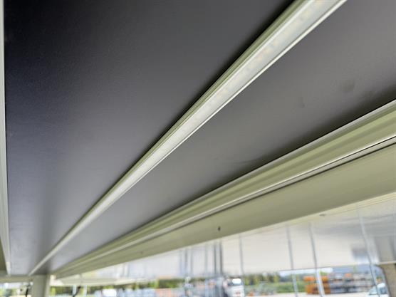 Sider og tag er sandwichkonstrueret og belagt med rengøringsvenlige hvide glasfibersider (30 mm) både ind- og udvendig