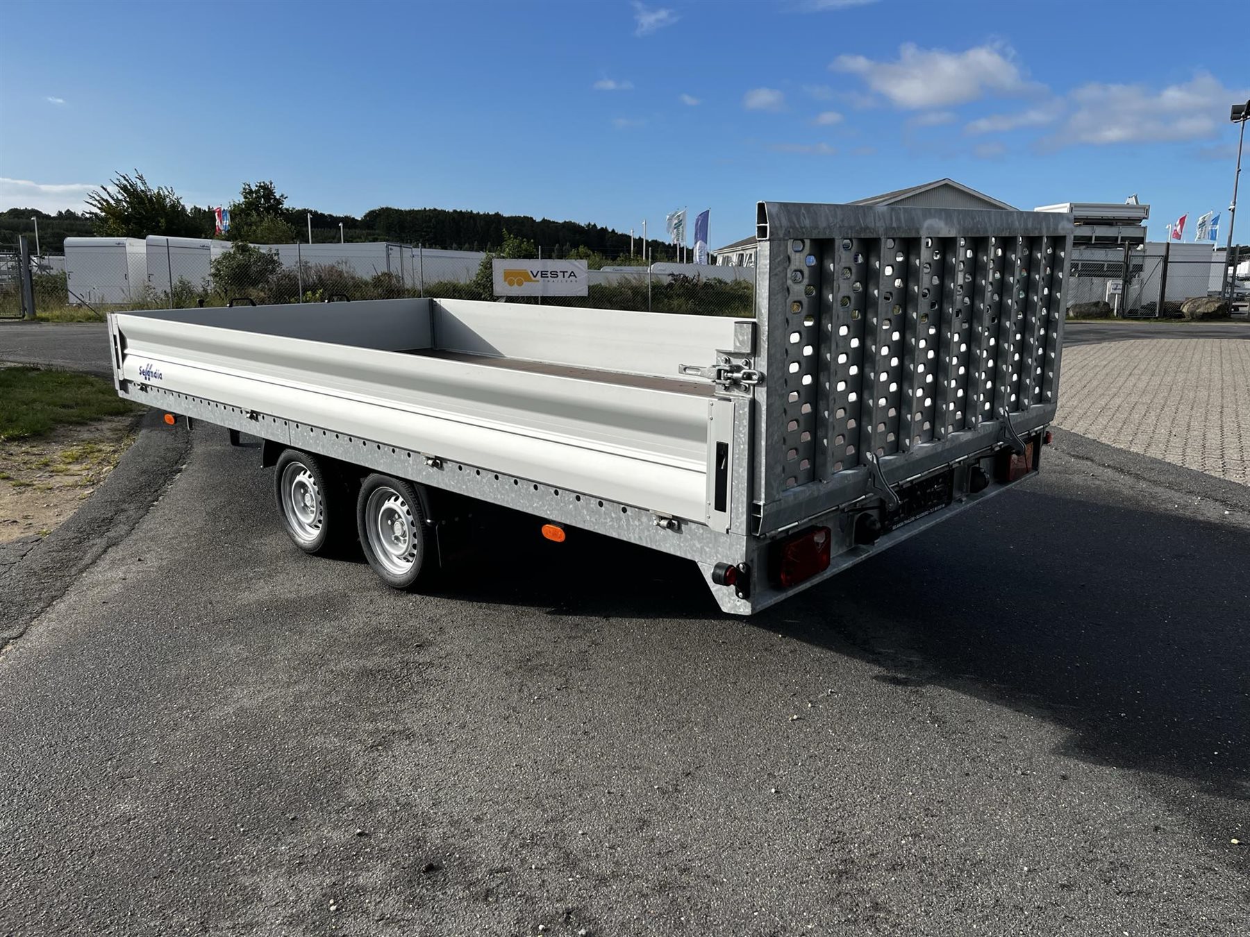 Ny trailer › Erhvervstrailer › Maskintrailer DEMO jumbo 3500-430 maskintrailer m/2 aksler NU 1Stk (FØR 71.995,00)56.995,00 DKK Tilkøb nummerplademed EU symbol uden EU symbol Konfigurér denne trailer Har du husket at købe… disse produkter? Manuelt håndspil f. Djumbo / Imola 3.890,00 DKK Koblingslås kraftig 299,00 DKK - + Koblingslås kraftig + 299,- i - + Manuelt håndspil f. Djumbo / Imola + 3.890,- i FØR 71.995,- 56.995,- Læg i kurvPå lager DKK inkl. moms (vis ekskl. moms) Varenummer: 1081 Book videofremvisningBestil leasingtilbud...eller ring på 86 81 81 64 Tekniske specifikationer Totalvægt 3500 kg Last 2578 kg Ladmål (indv.) 430x210x35 cm Bremser Ja Hjul 13" Aksler 2 Produktfordele DEMO MODEL - SPAR 15.000 kr. Fuldsvejset og varmgalvaniseret chassis V-træk Vandafvisende, skridsikker finerbund Aluminiumssider 35 cm - Hvoraf 3 sider kan nedfældes og forsmæk kan aftages Tipfunktion m/hydraulisk pumpe Surringsbeslag i bund 85 cm. høj rampe Støttehjul 250 kg LED positionslygter 12V lys, 13 polet stik Ladhøjde 65 cm Find den helt rigtige maskintrailer her hos os – Se alle de fine tilbud vi kører med i tiden. Produktbeskrivelse Djumbo 3500-430 er en alsidig og robust maskintrailer med særdeles gode køreegenskaber. Djumbo 3500-430 kan anvendes til mange forskellige formål, herunder blandt andet til transport af maskiner eller andet materiel, men også til transport af biler eller som almindelig ladtrailer. Djumbo har tipfunktion m/hydraulisk pumpe, og af- og pålæsning kan foregå meget nemt idet bagsmækken fungerer som opkørselsrampe. Bemærk indregistrering af trailer koster 790 kr. inkl. moms. Djumbo 3500-430 maskintrailer m/2 aksler DEMO 56.995,- DKK - + 56.995,- DKK inkl. moms (vis ekskl. moms) Læg i kurv Se alternative modeller 80.995,- DKKDjumbo 3500-530 maskintrailer m/3 aksler SÆRTILBUDFØR 96.995,- DKKNU 91.995,- DKKDjumbo 3500-620 bred maskintrailer m/3 aksler 80.995,- DKK Djumbo 3500-530 maskintrailer m/3 aksler FØR 96.995,- DKKNU 91.995,- DKK Djumbo 3500-620 bred maskintrailer m/3 aksler Nyttig viden Finansieringsløsninger erhvervFør du tager din trailer i brugGuide til køb af trailerTempo 100 godkendelse til trailerTrailerkørekort?Kørsel med trailer