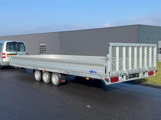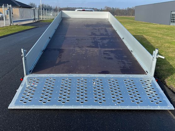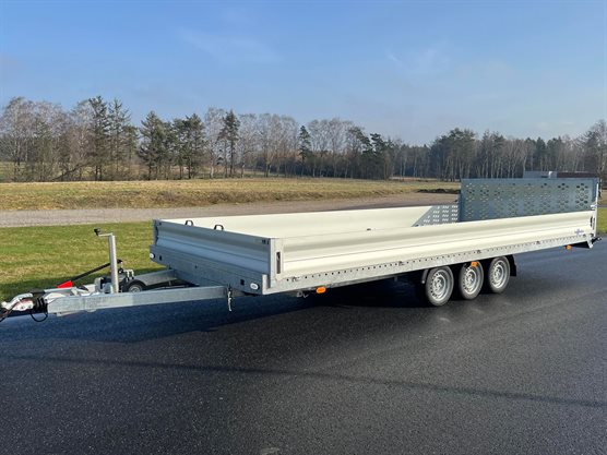 Ny trailer › Erhvervstrailer › Maskintrailer Djumbo 3500-620 bred maskintrailer m/3 aksler NU 1Stk (FØR 96.995,00)91.995,00 DKK Tilkøb nummerplademed EU symbol uden EU symbol Konfigurér denne trailer Har du husket at købe… disse produkter? Manuelt håndspil f. Djumbo / Imola 3.890,00 DKK Koblingslås kraftig 299,00 DKK - + Koblingslås kraftig + 299,- i - + Manuelt håndspil f. Djumbo / Imola + 3.890,- i FØR 96.995,- 91.995,- Læg i kurvPå lager DKK inkl. moms (vis ekskl. moms) Varenummer: 1066 Book videofremvisningBestil leasingtilbud...eller ring på 86 81 81 64 Tekniske specifikationer Totalvægt 3500 kg Last 2264 kg Ladmål (indv.) 617x247x35 cm Bremser Ja Hjul 13" Aksler 3 Produktfordele Fuldsvejset og varmgalvaniseret chassis Træk i lukkede profiler Vandafvisende, skridsikker finerbund Aluminiumssider 35 cm Tipfunktion m/ dobbelt virkende hydraulisk pumpe Surringsbeslag i bund 85 cm. høj forstærket rampe bag Støttehjul 250 kg 12V lys, 13 polet stik LED baglygter LED markeringslygter Ladhøjde 64 cm Her finder du alle vores stærke maskintrailers som er på tilbud lige nu. Produktbeskrivelse Bemærk indregistrering af trailer koster 790 kr. inkl. moms. Djumbo 3500-620 m/3 aksler er en alsidig og robust trailer med særdeles gode køreegenskaber. Det er en kombineret auto- og maskintrailer, der kan anvendes til mange forskellige formål, herunder blandt andet til transport af biler, maskiner eller andet materiel, men også som almindelig ladtrailer. Djumbo har tipfunktion m/hydraulisk pumpe, og af- og pålæsning kan foregå meget nemt idet bagsmækken fungerer som opkørselsrampe. Djumbo 3500-620 bred maskintrailer m/3 aksler 91.995,- DKK - + 91.995,- DKK inkl. moms (vis ekskl. moms) Læg i kurv Se alternative modeller 80.995,- DKKDjumbo 3500-530 maskintrailer m/3 aksler SÆRTILBUDFØR 58.995,- DKKNU 54.995,- DKKDjumbo 2700-430 maskintrailer m/2 aksler 80.995,- DKK Djumbo 3500-530 maskintrailer m/3 aksler FØR 58.995,- DKKNU 54.995,- DKK Djumbo 2700-430 maskintrailer m/2 aksler Nyttig viden Finansieringsløsninger erhvervForsikring af trailerFør du tager din trailer i brugGuide til køb af trailerTempo 100 godkendelse til trailerVægtafgift på trailerTrailerkørekort?Kørsel med trailer