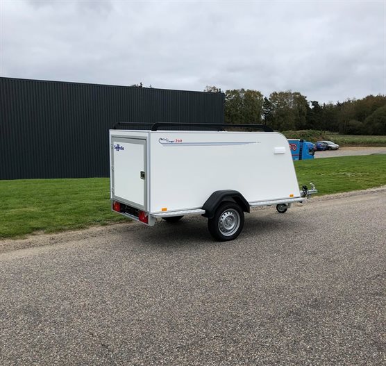 Ny trailer › Erhvervstrailer › Mini cargo trailer Euroline 260 cargotrailer NU 1Stk 23.995,00 DKK Tilkøb nummerplademed EU symbol uden EU symbol Konfigurér denne trailer Har du husket at købe… disse produkter? Koblingslås kraftig 299,00 DKK 112 – Brandslukker m/montering 400,00 DKK Trailer værktøjskasse medium 1.095,00 DKK Trailer værktøjskasse medium + 1.195,00 DKK Trailer værktøjskasse large 1.395,00 DKK Trailer værktøjskasse large + 1.595,00 DKK - + Koblingslås kraftig + 299,- i - + 112 – Brandslukker m/montering + 400,- i - + Trailer værktøjskasse medium + 1.095,- i - + Trailer værktøjskasse medium + + 1.195,- i - + Trailer værktøjskasse large + 1.395,- i - + Trailer værktøjskasse large + + 1.595,- i 23.995,- Læg i kurvPå lager DKK inkl. moms (vis ekskl. moms) Varenummer: 4043 Book videofremvisningBestil leasingtilbud...eller ring på 86 81 81 64 Tekniske specifikationer Totalvægt 750 kg Last 495 kg Ladmål (indv.) 253x110x90 cm Bremser Nej Hjul 13" Aksler 1 Produktfordele Trailerens sider og tag er fremstillet i sandwichkonstruerede og isolerede sider og tag beklædt med hvid glasfiber ud- og indvendig. Sider og tag er konstrueret med en vægtykkelse på 30 mm Finerbund 15 mm Aflåselig dør/døre bag V-træk Næsehjul Tagbøjler Trinbræt på vognens sider Vi har mange fine tilbud på cargo trailers lige nu! – Se dem alle lige her. Produktbeskrivelse Euroline 260 er en funktionel mini cargo trailer i strømlinet design. Traileren er af særdeles høj kvalitet og har en flot og gennemført finish. I kraft af trailerens højde på bare 90 cm og den aerodynamiske udformning af fronten, Bemærk indregistrering af trailer koster 790 kr. inkl. moms. Ekstraudstyr har denne trailer særdeles gode køreegenskaber og en god brændstoføkonomi. Traileren kan anvendes til mange forskellige formål og kan grundet den lave egenvægt benyttes af alle med almindeligt B kørekort. Euroline 260 er en funktionel mini cargo trailer i strømlinet design. Traileren er af særdeles høj kvalitet og har en flot og gennemført finish. I kraft af trailerens højde på bare 90 cm og den aerodynamiske udformning af fronten, har denne trailer særdeles gode køreegenskaber og en god brændstoføkonomi. Traileren kan anvendes til mange forskellige formål og kan grundet den lave egenvægt benyttes af alle med almindeligt B kørekort. Euroline 260 cargotrailer 23.995,- DKK - + 23.995,- DKK inkl. moms (vis ekskl. moms) Læg i kurv Se alternative modeller SÆRTILBUDFØR 21.995,- DKKNU 18.995,- DKKEuroline 210 cargotrailer SÆRTILBUDFØR 32.995,- DKKNU 29.995,- DKKEuroline 300 Cargotrailer med sidedør FØR 21.995,- DKKNU 18.995,- DKK Euroline 210 cargotrailer FØR 32.995,- DKKNU 29.995,- DKK Euroline 300 Cargotrailer med sidedør Kunder købte også 590,- DKK Trailer nummerplade med EU-symbol (momsfri) Nyttig viden Finansieringsløsninger erhvervFinansieringsløsninger privatForsikring af trailerFør du tager din trailer i brugTempo 100 godkendelse til trailerVægtafgift på trailerTrailerkørekort?Kørsel med trailer