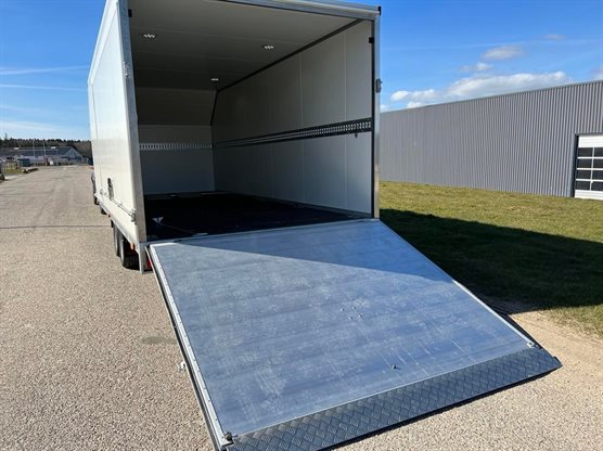 Ny trailer › Erhvervstrailer › Autotrailer Formula 3500-550 autotrailer NU 1Stk 206.200,00 DKK Tilkøb nummerplademed EU symbol uden EU symbol Konfigurér denne trailer Har du husket at købe… disse produkter? Bakkamera m/montering 2.025,00 DKK 112 – Brandslukker m/montering 400,00 DKK Koblingslås kraftig 299,00 DKK Trailer værktøjskasse UL large 1.395,00 DKK Trailer værktøjskasse UL small 1.095,00 DKK - + Bakkamera m/montering + 2.025,- i - + 112 – Brandslukker m/montering + 400,- i - + Koblingslås kraftig + 299,- i - + Trailer værktøjskasse UL large + 1.395,- i - + Trailer værktøjskasse UL small + 1.095,- i 206.200,- Ikke på lager DKK inkl. moms (vis ekskl. moms) Varenummer: 1023 Book videofremvisningBestil leasingtilbud...eller ring på 86 81 81 64 Tekniske specifikationer Totalvægt 3500 kg Last 2075 kg Ladmål (indv.) 550x232x190 cm Bremser Ja Hjul 13" Aksler 2 Produktfordele Galvaniseret stål chassis Aluminiumssider udformet i sandwichform Aluminiumsrampe i hele trailerens bredde bag Stanglås Stor sideklap Vippelad m/hydraulisk tip Indbygget hjulstop Surringsbeslag i bund LED lys i loft Hjulene er placeret under trailerens lad Aut. næsehjul Ladhøjde 61 cm Gør et kup! Vi har flere gode Auto Trailers, som er på lager til en god pris. Produktbeskrivelse Formula er en utrolig gennemført og funktionel lukket trailer fremstillet i aluminiumssider til transport af bl.a. biler. Traileren har en hel alurampe bag, stor sideklap, der kan åbnes, hydraulisk tip, der gør det nemt at på- og aflæsse biler. Traileren har desuden indbyggede hjulstop og surringsbeslag i bunden, der gør at lasten kan sikres under transport. Bemærk indregistrering af trailer koster 790 kr. inkl. moms Formula 3500-550 autotrailer 206.200,- DKK - + 206.200,- DKK inkl. moms (vis ekskl. moms) Læg i kurv Se alternative modeller 56.995,- DKKMSX 3500-405 maskin- og autotrailer 52.995,- DKKAMT 3000-507 autotrailer 79.900,- DKKDjumbo light 3500-520 m/2 aksler 104.995,- DKKLe Mans 3500-811 autotrailer smal m/knækket lad 105.995,- DKKHusky 2700 cargotrailer el-sænkbar 56.995,- DKK MSX 3500-405 maskin- og autotrailer 52.995,- DKK AMT 3000-507 autotrailer 79.900,- DKK Djumbo light 3500-520 m/2 aksler 104.995,- DKK Le Mans 3500-811 autotrailer smal m/knækket lad 105.995,- DKK Husky 2700 cargotrailer el-sænkbar Nyttig viden Finansieringsløsninger erhvervFør du tager din trailer i brugGuide til køb af trailerTempo 100 godkendelse til trailerTrailerkørekort?