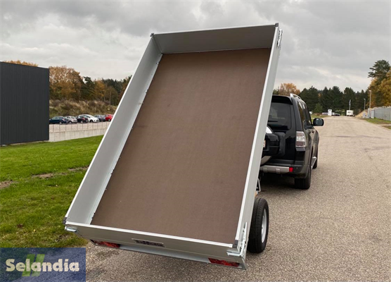 KLTB 1350-251 er en kraftfuld tiptrailer, perfekt til både private og professionelle projekter, hvor fleksibilitet og kapacitet er afgørende. Den har et varmgalvaniseret stålchassis og stærk finerbund, der sikrer holdbarhed under krævende opgaver. Aluminiumssiderne på 30 cm kan foldes ned, så større genstande nemt kan læsses.