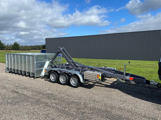 Ny trailer › Specialtrailer › Trailer med veksellad Konos XL 3500 specialtrailer m/3 aksler og veksellad NU 1Stk 173.450,00 DKK Tilkøb nummerplademed EU symbol uden EU symbol Konfigurér denne trailer Ekstraudstyr disse produkter? Konos XL stålcontainer 100 cm 37.995,00 DKK 112 – Brandslukker m/montering 400,00 DKK Koblingslås kraftig 299,00 DKK Konos XL aluminiumscontainer 35 cm med forhøjede sider 35 cm 49.995,00 DKK - + Konos XL stålcontainer 100 cm + 37.995,- i - + Konos XL aluminiumscontainer 35 cm med forhøjede sider 35 cm + 49.995,- i - + 112 – Brandslukker m/montering + 400,- i - + Koblingslås kraftig + 299,- i 173.450,- Læg i kurvPå lager DKK inkl. moms (vis ekskl. moms) Varenummer: 12030 Book videofremvisningBestil leasingtilbud...eller ring på 86 81 81 64 Tekniske specifikationer Totalvægt 3500 kg Last 2611 kg Ladmål (indv.) cm Bremser Ja Hjul 13" Aksler 3 Produktfordele Veksellad Elhejs til 12V Lader Elhydraulik Fjernbetjening Trådløs fjernbetjening. Stærk stålbund Opladning direkte på bil Produktbeskrivelse Foto med kasser er modelfoto - kasser købes separat. Bemærk indregistrering af trailer koster 790 kr. inkl. moms. Super stærk veksellads trailer. Traileren kan både bruges som tip og veksellad funktion, hvor ladet automatisk bliver centreret på traileren ved hejsning. Der er ikke nogen kompromis med kvaliteten på denne trailer. Bemærk, at container tilkøbes separat. Konos XL 3500 specialtrailer m/3 aksler og veksellad 173.450,- DKK - + 173.450,- DKK inkl. moms (vis ekskl. moms) Læg i kurv