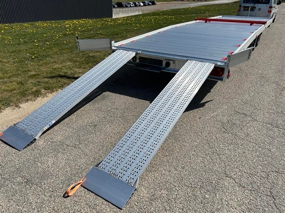 Ny trailer › Erhvervstrailer › Autotrailer Le Mans 3500-811 autotrailer smal m/knækket lad og overkørselsramper NU 1Stk (FØR 114.995,00)106.995,00 DKK Tilkøb nummerplademed EU symbol uden EU symbol Konfigurér denne trailer Har du husket at købe… disse produkter? 112 – Brandslukker m/montering 400,00 DKK Koblingslås kraftig 299,00 DKK - + 112 – Brandslukker m/montering + 400,- i - + Koblingslås kraftig + 299,- i FØR 114.995,- 106.995,- Læg i kurvPå lager DKK inkl. moms (vis ekskl. moms) Varenummer: 1080 Book videofremvisningBestil leasingtilbud...eller ring på 86 81 81 64 Tekniske specifikationer Totalvægt 3500 kg Last 2371 kg Ladmål (indv.) 811x210 cm Bremser Ja Hjul 13" Aksler 3 Produktfordele Fuldsvejset varmgalvaniseret chassis Bund fremstillet i aluminiumsprofiler Aluminiumsramper 200 cm Overkørselsramper V-træk Surringsbeslag i bund 12V, 13 polet stik LED markeringslygter Støttehjul 250 kg Hjulstop 2 stk. Ladhøjde 65 cm Vi har mange fine tilbud på Auto Trailers lige nu! – Se dem alle lige her. Produktbeskrivelse Le Mann er en kvalitets autotrailer, der kan anvendes til transport af op til 2 biler, desuden kan traileren anvendes til specialtransport af fx rør og lignende. Traileren er fremstillet i aluminium, har en lav egenvægt og har som standard 2 hjulstop der hjælper til at sikre lasten under kørsel og indbyggede aluramper der letter arbejdet med på- og aflæsning af last. Denne model har knækket lad. Bemærk indregistrering af trailer koster 790 kr. inkl. moms Ekstraudstyr Ekstra udstyr: Spil m/konsol 2.890,- kr. Res.hjul (195/50x13) 1282,50 kr. Alle priser er inkl. moms og ekskl. montering Le Mans 3500-811 autotrailer smal m/knækket lad og overkørselsramper 106.995,- DKK - + 106.995,- DKK inkl. moms (vis ekskl. moms) Læg i kurv Se alternative modeller 110.080,- DKKLe Mans 3500-811 autotrailer bred m/knækket lad SÆRTILBUDFØR 108.995,- DKKNU 96.995,- DKKLe Mans New Line 3500-811 autotrailer bred med lige lad 110.080,- DKK Le Mans 3500-811 autotrailer bred m/knækket lad FØR 108.995,- DKKNU 96.995,- DKK Le Mans New Line 3500-811 autotrailer bred med lige lad Nyttig viden Finansieringsløsninger erhvervFør du tager din trailer i brugGuide til køb af trailerTempo 100 godkendelse til trailerTrailerkørekort?