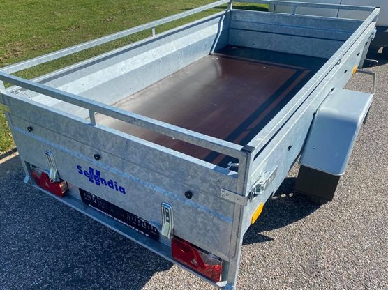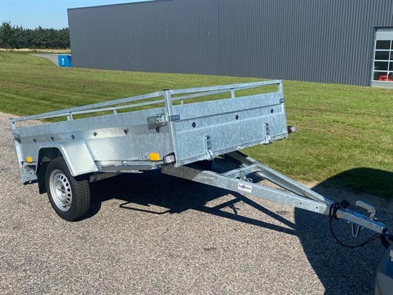 Den varmgalvaniserede stålkonstruktion beskytter traileren mod rust og slid, mens den skridsikre bund sikrer, at lasten ligger stabilt. Stålsiderne på 35 cm med railing giver ekstra sikkerhed, og de nedfældelige for- og bagsmække gør det nemt at laste længere materialer.