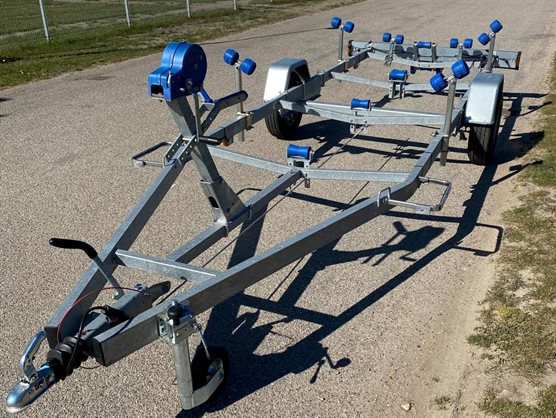 Kraftig og robust bådtrailer fremstillet i galvaniseret stål, til transport af både på op til 19 fod (5,8m). Bådtraileren har som standardudstyr 6 justerbare dobbelte sideruller, 4 kølruller og 1 vippekonsol med 4 ruller bag. Desuden har traileren som standard kraftigt håndspil med bånd, stævnstøtte, flytbar aksel og spil samt aftagelig lygteramme. |