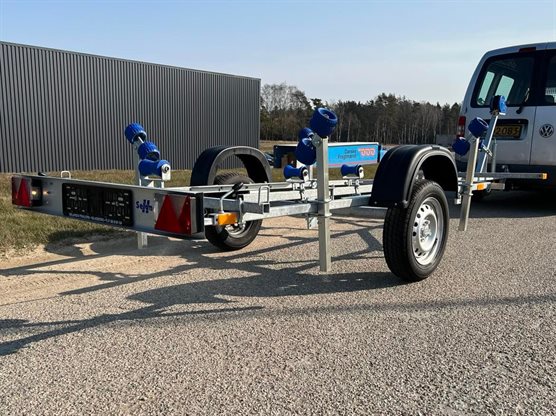 | Bemærk indregistrering af trailer koster 790 kr. inkl. moms. Fin bådtrailer fremstillet i galvaniseret stål, til transport af både på op til 17 fod (5,20 m). Bådtraileren har som standardudstyr 4 justerbare dobbelte sideruller og 3 kølruller. Desuden har traileren som standard kraftigt håndspil med bånd, stævnstøtte, glidende trækstang, så trailerens rammelængde kan justeres samt aftagelig lygteramme.