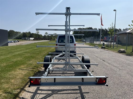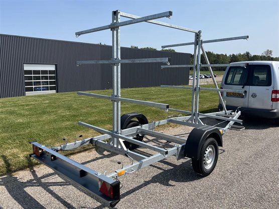 Funktionel trailer, der er udformet til transport af kajakker eller kanoer.