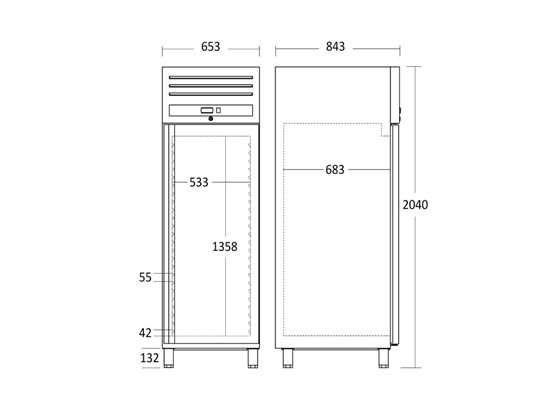 Scandomestic Prof. Fryseskab (543 Ltr.) - GUF700X NU 1Stk (FØR 29.999,00)19.999,00 DKK FØR 29.999,- 19.999,- Læg i kurvPå lager DKK inkl. moms (vis ekskl. moms) Varenummer: 18041 Book videofremvisningBestil leasingtilbud...eller ring på 86 81 81 64 Tekniske specifikationer Mål H: 2040 x B: 653 x D: 842 mm Produktfordele Udvendige mål (HBD): 2040 x 653 x 842 mm Vægt: 114 Kg. Plads: 543 Liter Lågen er vendbar Rustfri stål indvendigt & udvendigt Justerbare ben i rustfri stål - 125-200 mm Antal tråd hylder: 3 Stk. (maks. 40 kg.) Justerbar hylder Digitalt display Volt: 220-240V Energi mærke: D Årligt energiforbrug, kWh/a: 2485 Produktbeskrivelse Scandomestic GUF700X er et professionelt fryseskab, skabt til krævende miljøer som salgsvogne, food trucks og cargotrailers, hvor driftssikkerhed og høj kapacitet er afgørende. Med en rummelighed på 543 liter og tre justerbare trådhylder, der hver kan bære op til 40 kg, giver fryseskabet optimal fleksibilitet i opbevaringen. Den robuste konstruktion i rustfrit stål – både indvendigt og udvendigt – sikrer lang levetid og gør rengøring enkel. De justerbare ben i rustfrit stål (125-200 mm) giver stabilitet på ujævne overflader, og det digitale display giver nem adgang til præcis temperaturstyring. Med et årligt energiforbrug på 2485 kWh – svarende til ca. 283 watt i timen – leverer fryseskabet kraftfuld nedkøling med energiklasse D. Den vendbare låge giver ekstra fleksibilitet ved placering, så fryseskabet kan indgå i enhver professionel indretning. En stærk fryser til professionelle med høje krav. Scandomestic Prof. Fryseskab (543 Ltr.) - GUF700X 19.999,- DKK - + 19.999,- DKK inkl. moms (vis ekskl. moms) Læg i kurv