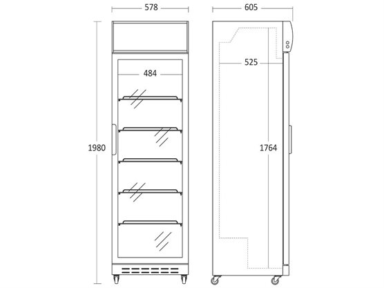 Reservedele og tilbehør › Udstyr til salgsvogne › Hvidevarer Scandomestic Displaykøleskab m/ Lysskilt (386 Ltr.) - SD 420 E NU 1Stk (FØR 10.799,00)6.499,00 DKK FØR 10.799,- 6.499,- Læg i kurvPå lager DKK inkl. moms (vis ekskl. moms) Varenummer: 18046 Book videofremvisningBestil leasingtilbud...eller ring på 86 81 81 64 Tekniske specifikationer Passer til H: 1980 x B: 578 x D: 605 mm Produktfordele Udvendige mål (HBD): 1980 x 578 x 605 mm Vægt: 67 Kg. Plads: 386 Liter Indbygget LED lys: 2 stk. Glas dør (Displaykøleskab) Reklame lysskilt Antal hylder: 5 Stk. Justerbar hylder Vendbar dør Volt: 220-240V Energi mærke: D Årligt energiforbrug, kWh/a: 639 Produktbeskrivelse Dette Scandomestic Displaykøleskab - SD 420 E på 386 liter er designet til synlighed og funktionalitet, hvilket gør det perfekt til salgsvogne, food trucks og andre mobile salgssteder. Med fem justerbare hylder og god højde giver det fleksibel opbevaring af kolde varer – klar til at blive præsenteret flot bag den store glasdør. De to indbyggede LED-lys sikrer, at produkterne altid står skarpt og indbydende, mens det øverste reklameskilt tilføjer ekstra blikfang til din profil eller dit brand. Den vendbare dør giver fleksibilitet ved placering, og køleskabets slanke mål på 1980 x 578 x 605 mm gør det let at integrere i både faste og mobile opsætninger. Med energimærke D og et årligt forbrug på 639 kWh – svarende til ca. 72,9 watt i timen – får du en pålidelig løsning med effektiv drift. Vægten på 67 kg sikrer både stabilitet og nem håndtering. Scandomestic Displaykøleskab m/ Lysskilt (386 Ltr.) - SD 420 E 6.499,- DKK - + 6.499,- DKK inkl. moms (vis ekskl. moms) Læg i kurv