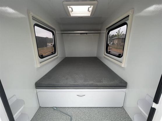 Silverline Midi, er en lille camping vogn med mange funktioner! Udformet i sandwich glasfiber sider med isolering. Som noget helt nyt, er traileren udstyret med opbevarings muligheder indvendigt under madrassen, hvilket gør den yderst praktisk at have med på farten. Med sit helt nye lygte design, udgør den en super flot og veludført campingvogn som selv små biler må trække.
