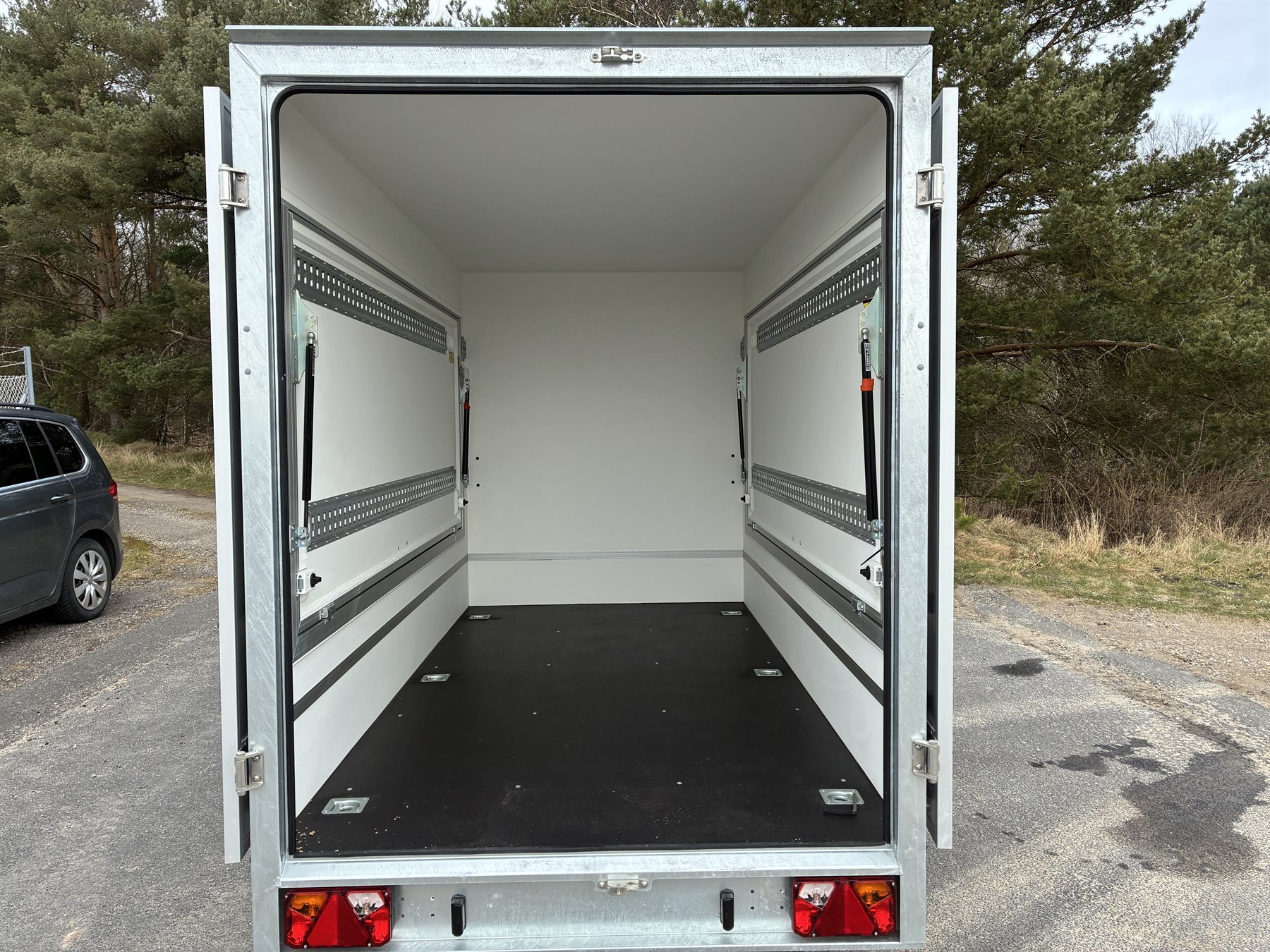 Ny trailer › Erhvervstrailer › Cargo trailer TF 300-1300 cargotrailer m/døre og 2 sideklapper Varenummer: 4061 NU 1Stk 52.995,00 DKK Konfigurér denne trailer Har du husket at købe… disse produkter? Surringsskinne i gulv & loft m/montering (meter pris) 825,00 DKK Standard solcellepakke m/montering 7.250,00 DKK Standard strøm- og lyspakke m/montering 4.750,00 DKK Standard strøm- og lyspakke m/batteri & montering 8.500,00 DKK Mover m/montering 24.000,00 DKK 112 – Brandslukker m/montering 400,00 DKK Alurampe sæt 258x35x10 7.300,00 DKK Koblingslås kraftig 299,00 DKK Trailer værktøjskasse medium 1.095,00 DKK Trailer værktøjskasse medium + 1.195,00 DKK Trailer værktøjskasse large 1.395,00 DKK Trailer værktøjskasse large + 1.595,00 DKK Arbejdslygte 2000L m/montering 1.295,00 DKK Blitz lygte m/montering 1.295,00 DKK Trailer værktøjskasse small + 895,00 DKK Surringsbånd til skinne 275,00 DKK Hjulsurring 275,00 DKK Surringsbånd med skralde 99,00 DKK Surringsøje til skinne 89,00 DKK - + Surringsskinne i gulv & loft m/montering (meter pris) + 825,- i - + 112 – Brandslukker m/montering + 400,- i - + Koblingslås kraftig + 299,- i - + Standard solcellepakke m/montering + 7.250,- i - + Standard strøm- og lyspakke m/montering + 4.750,- i - + Standard strøm- og lyspakke m/batteri & montering + 8.500,- i - + Arbejdslygte 2000L m/montering + 1.295,- i - + Blitz lygte m/montering + 1.295,- i - + Surringsbånd til skinne + 275,- i - + Hjulsurring + 275,- i - + Surringsbånd med skralde + 99,- i - + Surringsøje til skinne + 89,- i - + Trailer værktøjskasse medium + 1.095,- i - + Trailer værktøjskasse medium + + 1.195,- i - + Trailer værktøjskasse large + 1.395,- i - + Trailer værktøjskasse large + + 1.595,- i - + Trailer værktøjskasse small + + 895,- i - + Mover m/montering + 24.000,- i - + Alurampe sæt 258x35x10 + 7.300,- i 52.995,- Tilkøb nummerplademed EU symbol uden EU symbol DKK inkl. moms (vis ekskl. moms) På lager Læg i kurvTrustpilotBook videofremvisningBestil leasingtilbud...eller ring på 86 81 81 64 Tekniske specifikationer Totalvægt 1300 kg Last 626 kg Ladmål (indv.) 300x150x180 cm Bremser Ja Hjul 13" Aksler 1 stk. Produktfordele Trailerens sider og tag er fremstillet i finer beklædt med grå laminat udvendig og hvid laminat indvendig. Finerbund 15 mm V-træk Aflåselige døre bag 2 sideklapper i begge langsider Næsehjul Støtteben bag Surringsbeslag i bund – 6 stk. Find de bedste tilbud vi har på lukket trailers her. Produktbeskrivelse TP cargo 300 - en kombination af en cargo trailer og en salgsvogn. Dette betyder, at traileren har gode funktions muligheder. TP 300 er udformet i finer i sider og bund og har døre bag samt sideklapper i begge langsider. Bemærk indregistrering af trailer koster 790 kr. inkl. moms. Udvidet beskrivelse Leasing eksempel over 60 mdr. (ekskl. moms): Priseksempel: 40.620,- kr. Udbetaling: 8.124,- kr. Ydelse pr. md.: 757,- kr. Restværdi 5%: 2.031,- kr. Med forbehold for kreditgodkendelse TF 300-1300 cargotrailer m/døre og 2 sideklapper 52.995,- DKK - + 52.995,- DKK inkl. moms (vis ekskl. moms) Læg i kurv Se alternative modeller SÆRTILBUDFØR 26.995,- DKKNU 23.495,- DKKTF 250-750 cargotrailer m/døre 38.795,- DKKTF 250-750 cargotrailer m/døre og 2 sideklapper SÆRTILBUDFØR 29.995,- DKKNU 25.995,- DKKTF 250-750 cargotrailer m/rampe FØR 26.995,- DKKNU 23.495,- DKK TF 250-750 cargotrailer m/døre 38.795,- DKK TF 250-750 cargotrailer m/døre og 2 sideklapper FØR 29.995,- DKKNU 25.995,- DKK TF 250-750 cargotrailer m/rampe Nyttig viden Finansieringsløsninger erhvervForsikring af trailerFør du tager din trailer i brugTempo 100 godkendelse til trailerVægtafgift på trailerTrailerkørekort?Kørsel med trailer