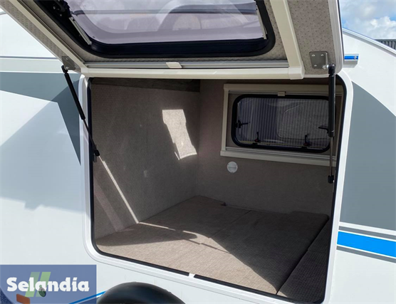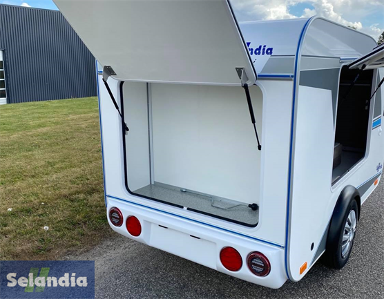 | Bemærk indregistrering af trailer koster 790 kr. inkl. moms. Mini campingvogn i et veludført design. Tommy er udført i et strømlignet design, der sikrer nem kørsel på vejen. Vognen er udstyret med gode opbevarings muligheder både inde i vognen, men også bag i rummet til opbevaring. Den 2 delte madras kan foldes, så man kan sidde i campingvognen og bordplader er monteret under den forreste madras. Vognen er nem at få Tempo 100 godkendt.