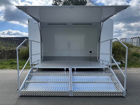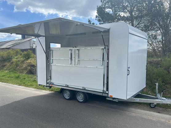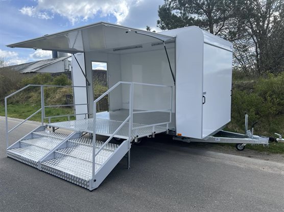 Ny trailer › Mobile salgsenheder › Udstillingsvogn TP 370 udstillingsvogn m/tribune NU 1Stk (FØR 128.995,00)108.995,00 DKK Tilkøb nummerplademed EU symbol uden EU symbol Konfigurér denne trailer Har du husket at købe… disse produkter? 400V 16A indtag med 5 stk. dobbelt 230V stikk. 6.062,50 DKK Bakkamera m/montering 2.025,00 DKK 112 – Brandslukker m/montering 400,00 DKK Koblingslås kraftig 299,00 DKK - + 400V 16A indtag med 5 stk. dobbelt 230V stikk. + 6.062,50 i - + Bakkamera m/montering + 2.025,- i - + 112 – Brandslukker m/montering + 400,- i - + Koblingslås kraftig + 299,- i FØR 128.995,- 108.995,- Læg i kurvPå lager DKK inkl. moms (vis ekskl. moms) Varenummer: 10110 Book videofremvisningBestil leasingtilbud...eller ring på 86 81 81 64 Tekniske specifikationer Totalvægt 2700 kg Last 1548 kg Ladmål (indv.) 370x220x217 cm Bremser Ja Hjul 13" Aksler 2 Produktfordele 1 STK. DEMO MODEL - SPAR 20.000 kr. Eksklusiv prisstærk showroom/scene løsning, der nemt kan flyttes fra sted til sted Nem at betjene og gøre klar til brug Velisoleret og langtidsholdbar vogn, med sandwichkonstruerede og isolerede sider og tag (30 mm) beklædt med hvid glasfiber ind- og udvendig Foldbar sideklap med trappeindgang m/gelænder Stilrent aerodynamisk design med afrundet front og optimeret brændstoføkonomi Dør bag Heavy duty støtteben 4 stk. Kraftig finérbund (18 mm) belagt med pæn linoleum 230 V lys armatur 230 V elinstallation med 2 stikkontakter Størrelse på vandret platform ca. 320x150 cm. En vogn med mange muligheder! Find din næste udstillingsvogn, som allerede er klar til levering. Produktbeskrivelse TP 370 udstillingsvogn m/tribune er en eksklusiv alsidig mobil udstillingsvogn, der kan benyttes til mange formål. Skab mere blikfang for dine potentielle kunder på messer, markeder eller anden form for turné, som kræver et mobilt showroom, der nemt kan flyttes. TP 370 er udstyret med trappe som let på-og afmonteres, så den foldbare platform kan bruges som evt. scene. Konstruktionen på traileren er i svejset, varmgalvaniseret materiale og med sider udformet i glasfiber i sandwichplader. En funktionel mobil showroom løsning til en stærk pris. Bemærk indregistrering af trailer koster 790 kr. inkl. moms TP 370 udstillingsvogn m/tribune 108.995,- DKK - + 108.995,- DKK inkl. moms (vis ekskl. moms) Læg i kurv Se alternative modeller SÆRTILBUDFØR 143.995,- DKKNU 103.995,- DKKVZ 465 udstillingsvogn 76.415,- DKKTP 360-2700 cargotrailer m/døre og stor sideklap FØR 143.995,- DKKNU 103.995,- DKK VZ 465 udstillingsvogn 76.415,- DKK TP 360-2700 cargotrailer m/døre og stor sideklap Nyttig viden Finansieringsløsninger erhvervForsikring af trailerTempo 100 godkendelse til trailerVægtafgift på trailerTrailerkørekort?Kørsel med trailerIndretning af salgsvogn