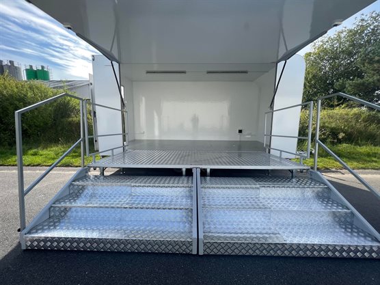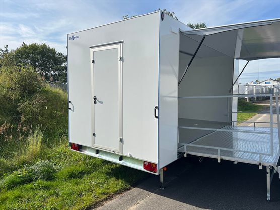 Ny trailer › Mobile salgsenheder › Udstillingsvogn TP 470 udstillingsvogn m/tribune NU 1Stk 139.995,00 DKK Tilkøb nummerplademed EU symbol uden EU symbol Konfigurér denne trailer Har du husket at købe… disse produkter? 400V 16A indtag med 5 stk. dobbelt 230V stikk. 6.062,50 DKK Bakkamera m/montering 2.025,00 DKK 112 – Brandslukker m/montering 400,00 DKK Koblingslås kraftig 299,00 DKK - + 400V 16A indtag med 5 stk. dobbelt 230V stikk. + 6.062,50 i - + Bakkamera m/montering + 2.025,- i - + 112 – Brandslukker m/montering + 400,- i - + Koblingslås kraftig + 299,- i 139.995,- Læg i kurvPå lager DKK inkl. moms (vis ekskl. moms) Varenummer: 10101 Book videofremvisningBestil leasingtilbud...eller ring på 86 81 81 64 Tekniske specifikationer Totalvægt 2700 kg Last 1443 kg Ladmål (indv.) 470x220x217 cm Bremser Ja Hjul 13" Aksler 2 Produktfordele Eksklusiv prisstærk showroom/scene løsning, der nemt kan flyttes fra sted til sted Nem at betjene og gøre klar til brug Velisoleret og langtidsholdbar vogn, med sandwichkonstruerede og isolerede sider og tag (30 mm)beklædt med hvid glasfiber ind- og udvendig Foldbar sideklap med trappeindgang m/gelænder Stilrent aerodynamisk design med afrundet front og optimeret brændstoføkonomi Dør bag Heavy duty støtteben 4 stk. Kraftig finérbund (18 mm) belagt med pæn linoleum 230 V lys armatur 230 V elinstallation med 2 stikkontakter Størrelse på vandret platform ca. 470x150 cm. En vogn med mange muligheder! Se vores gode tilbud på udstillingsvogne her. Produktbeskrivelse TP 470 udstillingsvogn med tribune udgør en funktionel mobil showroom løsning, der blandt andet kan benyttes til salg og udstilling af mange forskellige produkter. Med en strømlinet udstillingsvogn kan du skabe mere blikfang for dine potentielle kunder på messer, markeder og andre former for turné. TP 470 md tribune er udstyret med trappe som let på-og afmonteres, så med den foldbare platform, vil den også nemt kunne anvendes som evt. scene. Mulighederne er mange! Konstruktionen på traileren er i svejset, varmgalvaniseret materiale og med sider udformet i glasfiber i sandwichplader. En eksklusiv mobil showroom løsning, hvor der ikke er gået på kompromis med kvaliteten og samtidig til en stærk pris. Bemærk indregistrering af trailer koster 790 kr. inkl. moms TP 470 udstillingsvogn m/tribune 139.995,- DKK - + 139.995,- DKK inkl. moms (vis ekskl. moms) Læg i kurv Se alternative modeller SÆRTILBUDFØR 143.995,- DKKNU 103.995,- DKKVZ 465 udstillingsvogn 76.415,- DKKTP 360-2700 cargotrailer m/døre og stor sideklap FØR 143.995,- DKKNU 103.995,- DKK VZ 465 udstillingsvogn 76.415,- DKK TP 360-2700 cargotrailer m/døre og stor sideklap Nyttig viden Finansieringsløsninger erhvervForsikring af trailerTempo 100 godkendelse til trailerVægtafgift på trailerTrailerkørekort?Kørsel med trailerIndretning af salgsvogn