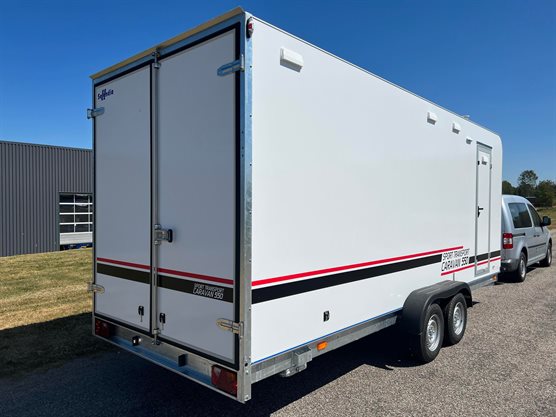 Ny trailer › Erhvervstrailer › Cargo trailer TP 550-2700 Sport Transport Caravan NU 1Stk 180.200,00 DKK Tilkøb nummerplademed EU symbol uden EU symbol 180.200,- Læg i kurvPå lager DKK inkl. moms (vis ekskl. moms) Varenummer: 4218 Book videofremvisningBestil leasingtilbud...eller ring på 86 81 81 64 Tekniske specifikationer Totalvægt 2700 kg Last 1462 kg Ladmål (indv.) 550x200x210 cm Bremser Ja Hjul 13" Aksler 2 Produktfordele Opbygget i sandwich konstruktion Isoleret glasfiber LED lys indvendigt Møbelsæt med madrasser Køjeseng med tilhørende stige Vindue m/rullegardin - mørklægning og fluenet Tagventil med ovenlys Næsehjul Støtteben 4 stk. Opbevaringsrum under madras Fløjdøre bag, sidedør med indgang til opholdsrum Vandskyllende kassette toilet med 17.5L transportabel tank Håndvask i toilet med brusefunktion klædeskab Køkken installation med 2 gasblus og håndvask med koldt og varmt vand Køleskab både på el (12V) og gas 12V og 230V el-installation i caravan delen Gasvarme 4 surringskinner og 6 surringsøjer i transportrum Lige nu har vi cargo trailers på lager til gode priser! Du finder dem her. Produktbeskrivelse TP Sport transport caravan er en lukket trailer der kan bruges til mange formål. Heriblandt motorsport og som værkstedvogn til den professionelle håndværker, der også har brug for en overnatningsmulighed. Vognen er indrettet med fløjdøre bag med et stort rum, der kan benyttes til transport og værkstedsopbygning. I fronten af vognen, finder du et opholdsrum med gasblus, håndvask, opbevaringsskab, siddegruppe med plads til 2 som og kan benyttes som seng, køje med stige, lys i opholdsrum og toilet med brusebad. Ekstraudstyr - Opholdsrum: 251x200x210 cm (LxBxH) - Transportrum: 298x200x210 cm (LxBxH) - Gasinstallation med separat gasrum til 2 flasker (Køkken, køleskab og gasvarme) - DOMETIC 60L køleskab både på el og gas - Truma S 3004 gasvarme - Koldt og varmt vand med 5L Truma varmvandsbeholder - Vandskyllende kemisk toilet fra Thetford med 17.5L transportabel tank Leasingeksempel via Ikano Bank over 60 mdr. (ekskl. moms): Priseksempel: 147.000,- kr. Udbetaling: 29.400,- kr. Ydelse pr. md.: 2.578,- kr. Restværdi 5%: 7.350,- kr. Med forbehold for kreditgodkendelse og tastefejl. TP 550-2700 Sport Transport Caravan 180.200,- DKK - + 180.200,- DKK inkl. moms (vis ekskl. moms) Læg i kurv Se alternative modeller 66.725,- DKKTP 300-2000 cargotrailer m/rampe og sidedør 65.995,- DKKTP 360-2000 cargotrailer m/døre og sidedør 70.995,- DKKTP 360-2000 cargotrailer m/rampe og sidedør 69.495,- DKKTP 420-2700 cargotrailer m/døre SÆRTILBUDFØR 72.995,- DKKNU 67.995,- DKKTP 420-2700 cargotrailer m/døre og sidedør SÆRTILBUDFØR 76.995,- DKKNU 69.995,- DKKTP 420-2700 cargotrailer m/rampe og sidedør SÆRTILBUDFØR 79.995,- DKKNU 67.995,- DKKTP 420-2700 cargotrailer m/rampe, sidedør og hjul under vognen SÆRTILBUDFØR 81.995,- DKKNU 75.995,- DKKTP 500-2700 cargotrailer m/døre og sidedør 86.495,- DKKTP 500-2700 cargotrailer m/rampe og sidedør SÆRTILBUDFØR 89.995,- DKKNU 79.995,- DKKTP 500-3500 cargotrailer m/døre og sidedør 79.995,- DKKTP 550-2700 cargotrailer m/døre og sidedør 83.400,- DKKTP 550-2700 cargotrailer m/rampe og sidedør SÆRTILBUDFØR 90.305,- DKKNU 84.305,- DKKTP 550-3500 cargotrailer m/døre og sidedør SÆRTILBUDFØR 103.125,- DKKNU 93.125,- DKKTP 600-3000 cargotrailer m/rampe og sidedør SÆRTILBUDFØR 103.995,- DKKNU 93.995,- DKKTP 600-3500 cargotrailer m/døre og sidedør SÆRTILBUDFØR 109.975,- DKKNU 103.975,- DKKTP 600-3500 cargotrailer m/rampe og sidedør 76.415,- DKKTP 360-2700 cargotrailer m/døre og stor sideklap 59.495,- DKKTP 300-2000 cargotrailer m/døre 60.995,- DKKTP 300-2000 cargotrailer m/rampe 66.725,- DKK TP 300-2000 cargotrailer m/rampe og sidedør 65.995,- DKK TP 360-2000 cargotrailer m/døre og sidedør 70.995,- DKK TP 360-2000 cargotrailer m/rampe og sidedør 69.495,- DKK TP 420-2700 cargotrailer m/døre FØR 72.995,- DKKNU 67.995,- DKK TP 420-2700 cargotrailer m/døre og sidedør FØR 76.995,- DKKNU 69.995,- DKK TP 420-2700 cargotrailer m/rampe og sidedør FØR 79.995,- DKKNU 67.995,- DKK TP 420-2700 cargotrailer m/rampe, sidedør og hjul under vognen FØR 81.995,- DKKNU 75.995,- DKK TP 500-2700 cargotrailer m/døre og sidedør 86.495,- DKK TP 500-2700 cargotrailer m/rampe og sidedør FØR 89.995,- DKKNU 79.995,- DKK TP 500-3500 cargotrailer m/døre og sidedør 79.995,- DKK TP 550-2700 cargotrailer m/døre og sidedør 83.400,- DKK TP 550-2700 cargotrailer m/rampe og sidedør FØR 90.305,- DKKNU 84.305,- DKK TP 550-3500 cargotrailer m/døre og sidedør FØR 103.125,- DKKNU 93.125,- DKK TP 600-3000 cargotrailer m/rampe og sidedør FØR 103.995,- DKKNU 93.995,- DKK TP 600-3500 cargotrailer m/døre og sidedør FØR 109.975,- DKKNU 103.975,- DKK TP 600-3500 cargotrailer m/rampe og sidedør 76.415,- DKK TP 360-2700 cargotrailer m/døre og stor sideklap 59.495,- DKK TP 300-2000 cargotrailer m/døre 60.995,- DKK TP 300-2000 cargotrailer m/rampe Nyttig viden Finansieringsløsninger erhvervForsikring af trailerFør du tager din trailer i brugTempo 100 godkendelse til trailerVægtafgift på trailerTrailerkørekort?Kørsel med trailer