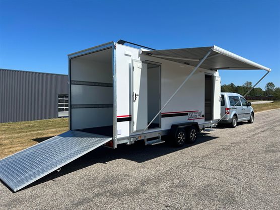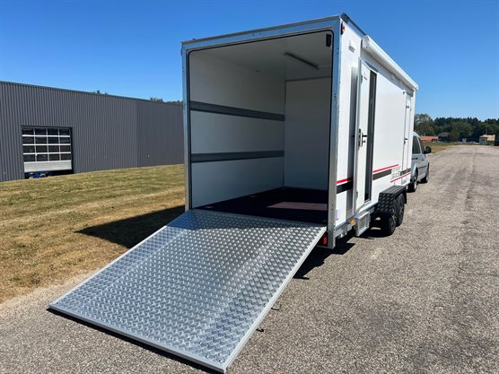 Ny trailer › Erhvervstrailer › Cargo trailer TP 550-2700 Sport Transport Caravan De-Luxe NU 1Stk 216.900,00 DKK Tilkøb nummerplademed EU symbol uden EU symbol 216.900,- Læg i kurvPå lager DKK inkl. moms (vis ekskl. moms) Varenummer: 4216 Book videofremvisningBestil leasingtilbud...eller ring på 86 81 81 64 Tekniske specifikationer Totalvægt 2700 kg Last 1341 kg Ladmål (indv.) 550x200x210 cm Bremser Ja Hjul 13" Aksler 2 Produktfordele Opbygget i sandwich konstruktion Isoleret glasfiber LED lys indvendigt Møbelsæt med madrasser Køjeseng med tilhørende stige Vindue m/rullegardin - mørklægning og fluenet Tagventil med ovenlys Næsehjul Støtteben 4 stk. Opbevaringsrum under madras Ekstra forstærket rampe bag, sidedør med indgang til opholdsrum og transportrum Vandskyllende kassette toilet med 17.5L transportabel tank Håndvask i toilet med brusefunktion klædeskab Køkken installation med 2 gasblus og håndvask med koldt og varmt vand Køleskab både på el og gas 12V og 230V el-installation i caravan delen Gasvarme 4 surringskinner og 6 surringsøjer i transportrum Markise i vognens længde højreside Aluminiums hjulskærme Tagbøjler 12V udendørs lys ved sidedør i front Klapbar trin ved døre Find dig en kvalitets cargo trailer hos os! Vi har flere gode tilbud lige nu. Produktbeskrivelse TP Sport transport caravan er en lukket trailer der kan bruges til mange formål. Heriblandt motorsport og som værkstedvogn til den professionelle håndværker, der også har brug for en overnatningsmulighed. Vognen er indrettet med rampe med et stort rum, der kan benyttes til transport og værkstedsopbygning. På siden, finder man en stor markise og sidedøre til brug af indgang til vognen. I fronten af, finder du et opholdsrum med gasblus, håndvask, opbevaringsskab, siddegruppe med plads til 2 som og kan benyttes som seng, køje med stige, lys i opholdsrum og toilet med brusebad. Ekstraudstyr - Opholdsrum: 251x200x210 cm (LxBxH) - Transportrum: 298x200x210 cm (LxBxH) - Gasinstallation med separat gasrum til 2 flasker (Køkken, køleskab og gasvarme) - DOMETIC 60L køleskab både på el og gas - Truma S 3004 gasvarme - Koldt og varmt vand med 5L Truma varmvandsbeholder - Vandskyllende kemisk toilet fra Thetford med 17.5L transportabel tank - 230V LED lys og 4 x dobbeltstikkontakter i transportrum - Markise FIAMMA 4470 Leasingeksempel via Ikano Bank over 60 mdr. (ekskl. moms): Priseksempel: 172.000,- kr. Udbetaling: 34.400,- kr. Ydelse pr. md.: 3.017,- kr. Restværdi 5%: 8.600,- kr. Med forbehold for kreditgodkendelse og tastefejl. TP 550-2700 Sport Transport Caravan De-Luxe 216.900,- DKK - + 216.900,- DKK inkl. moms (vis ekskl. moms) Læg i kurv Se alternative modeller 66.725,- DKKTP 300-2000 cargotrailer m/rampe og sidedør 65.995,- DKKTP 360-2000 cargotrailer m/døre og sidedør 70.995,- DKKTP 360-2000 cargotrailer m/rampe og sidedør 69.495,- DKKTP 420-2700 cargotrailer m/døre SÆRTILBUDFØR 72.995,- DKKNU 67.995,- DKKTP 420-2700 cargotrailer m/døre og sidedør SÆRTILBUDFØR 76.995,- DKKNU 69.995,- DKKTP 420-2700 cargotrailer m/rampe og sidedør SÆRTILBUDFØR 79.995,- DKKNU 67.995,- DKKTP 420-2700 cargotrailer m/rampe, sidedør og hjul under vognen SÆRTILBUDFØR 81.995,- DKKNU 75.995,- DKKTP 500-2700 cargotrailer m/døre og sidedør 86.495,- DKKTP 500-2700 cargotrailer m/rampe og sidedør SÆRTILBUDFØR 89.995,- DKKNU 79.995,- DKKTP 500-3500 cargotrailer m/døre og sidedør 79.995,- DKKTP 550-2700 cargotrailer m/døre og sidedør 83.400,- DKKTP 550-2700 cargotrailer m/rampe og sidedør SÆRTILBUDFØR 90.305,- DKKNU 84.305,- DKKTP 550-3500 cargotrailer m/døre og sidedør SÆRTILBUDFØR 103.125,- DKKNU 93.125,- DKKTP 600-3000 cargotrailer m/rampe og sidedør SÆRTILBUDFØR 103.995,- DKKNU 93.995,- DKKTP 600-3500 cargotrailer m/døre og sidedør SÆRTILBUDFØR 109.975,- DKKNU 103.975,- DKKTP 600-3500 cargotrailer m/rampe og sidedør 76.415,- DKKTP 360-2700 cargotrailer m/døre og stor sideklap 59.495,- DKKTP 300-2000 cargotrailer m/døre 60.995,- DKKTP 300-2000 cargotrailer m/rampe 66.725,- DKK TP 300-2000 cargotrailer m/rampe og sidedør 65.995,- DKK TP 360-2000 cargotrailer m/døre og sidedør 70.995,- DKK TP 360-2000 cargotrailer m/rampe og sidedør 69.495,- DKK TP 420-2700 cargotrailer m/døre FØR 72.995,- DKKNU 67.995,- DKK TP 420-2700 cargotrailer m/døre og sidedør FØR 76.995,- DKKNU 69.995,- DKK TP 420-2700 cargotrailer m/rampe og sidedør FØR 79.995,- DKKNU 67.995,- DKK TP 420-2700 cargotrailer m/rampe, sidedør og hjul under vognen FØR 81.995,- DKKNU 75.995,- DKK TP 500-2700 cargotrailer m/døre og sidedør 86.495,- DKK TP 500-2700 cargotrailer m/rampe og sidedør FØR 89.995,- DKKNU 79.995,- DKK TP 500-3500 cargotrailer m/døre og sidedør 79.995,- DKK TP 550-2700 cargotrailer m/døre og sidedør 83.400,- DKK TP 550-2700 cargotrailer m/rampe og sidedør FØR 90.305,- DKKNU 84.305,- DKK TP 550-3500 cargotrailer m/døre og sidedør FØR 103.125,- DKKNU 93.125,- DKK TP 600-3000 cargotrailer m/rampe og sidedør FØR 103.995,- DKKNU 93.995,- DKK TP 600-3500 cargotrailer m/døre og sidedør FØR 109.975,- DKKNU 103.975,- DKK TP 600-3500 cargotrailer m/rampe og sidedør 76.415,- DKK TP 360-2700 cargotrailer m/døre og stor sideklap 59.495,- DKK TP 300-2000 cargotrailer m/døre 60.995,- DKK TP 300-2000 cargotrailer m/rampe Nyttig viden Finansieringsløsninger erhvervForsikring af trailerFør du tager din trailer i brugTempo 100 godkendelse til trailerVægtafgift på trailerTrailerkørekort?Kørsel med trailer