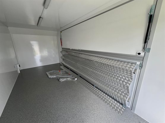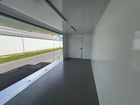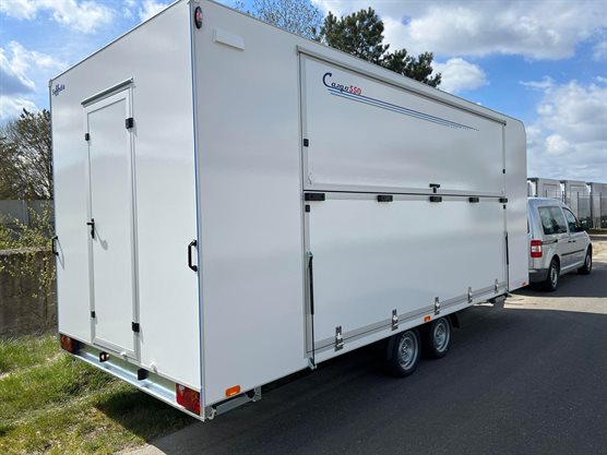 TP 550 udstillingsvogn er en eksklusiv og funktionel mobil showroom løsning, som har mange anvendelsesmuligheder. En mobil udstillingsvogn kan blandt andet benyttes til salg og udstilling af mange forskellige produkter og med en strømlinet udstillingsvogn kan du skabe mere blikfang for dine potentielle kunder på messer, markeder og andre former for turné. Vognen er særdeles nem at betjene og kan hurtigt gøres klar til brug ved at åbne den 2-delte klap i vognens ene langside. Kunder har indgang til vognen via et bredt indgangsparti, med gelænder.