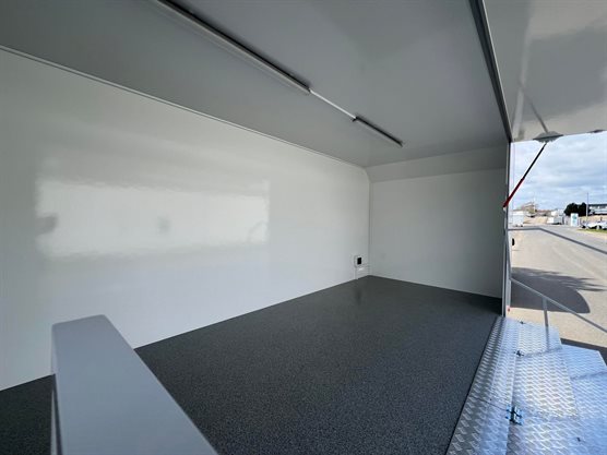 Velisoleret og langtidsholdbar vogn, med sandwichkonstruerede og isolerede sider og tag (30 mm) beklædt med hvid glasfiber ind- og udvendig