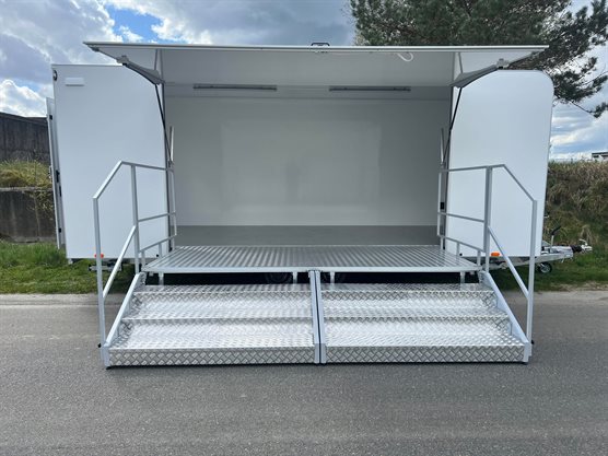 Ny trailer › Mobile salgsenheder › Udstillingsvogn TP 550 udstillingsvogn m/tribune NU 1Stk 154.995,00 DKK Tilkøb nummerplademed EU symbol uden EU symbol Konfigurér denne trailer Har du husket at købe… disse produkter? 400V 16A indtag med 5 stk. dobbelt 230V stikk. 6.062,50 DKK Bakkamera m/montering 2.025,00 DKK 112 – Brandslukker m/montering 400,00 DKK Koblingslås kraftig 299,00 DKK - + 400V 16A indtag med 5 stk. dobbelt 230V stikk. + 6.062,50 i - + Bakkamera m/montering + 2.025,- i - + 112 – Brandslukker m/montering + 400,- i - + Koblingslås kraftig + 299,- i 154.995,- Læg i kurvPå lager DKK inkl. moms (vis ekskl. moms) Varenummer: 10112 Book videofremvisningBestil leasingtilbud...eller ring på 86 81 81 64 Tekniske specifikationer Totalvægt 2700 kg Last 1397 kg Ladmål (indv.) 550x220x217 cm Bremser Ja Hjul 13" Aksler 2 Produktfordele Eksklusiv prisstærk showroom/scene løsning, der nemt kan flyttes fra sted til sted Nem at betjene og gøre klar til brug Velisoleret og langtidsholdbar vogn, med sandwichkonstruerede og isolerede sider og tag (18 mm)( beklædt med hvid glasfiber ind- og udvendig Foldbar sideklap med trappeindgang m/gelænder Stilrent aerodynamisk design med afrundet front og optimeret brændstoføkonomi Dør bag Heavy duty støtteben 4 stk. Kraftig finérbund (18 mm) belagt med pæn linoleum 230 V lys armatur 230 V elinstallation med 2 stikkontakter Størrelse på vandret platform ca. 550x150 cm. En vogn med mange muligheder! Find dig en kvalitets udstillingsvogn hos os! Vi har flere gode tilbud lige nu. Produktbeskrivelse TP 550 udstillingsvogn med tribune udgør et eksklusivt mobilt showroom, som kan bruges til salg og udstilling af mange forskellige produkter og nemt kan flyttes fra sted til sted. Dertil kommer, at den store foldbare platform også giver mulighed for, at vognen kan anvendes som scenevogn - mulighederne er mange! Designet er strømlinet og lækkert og med en TP 550 kan du skabe blikfang for dine potentielle kunder på messer, markeder og andre former for turné. TP 550 er udstyret med trappe med gelænder, som let på-og afmonteres. Konstruktionen på traileren er i svejset, varmgalvaniseret materiale og med sider udformet i glasfiber i sandwichplader. En mobil showroom løsning, hvor der ikke er gået på kompromis med kvaliteten og samtidig til en stærk pris. Bemærk indregistrering af trailer koster 790 kr. inkl. moms TP 550 udstillingsvogn m/tribune 154.995,- DKK - + 154.995,- DKK inkl. moms (vis ekskl. moms) Læg i kurv Se alternative modeller SÆRTILBUDFØR 143.995,- DKKNU 103.995,- DKKVZ 465 udstillingsvogn 76.415,- DKKTP 360-2700 cargotrailer m/døre og stor sideklap FØR 143.995,- DKKNU 103.995,- DKK VZ 465 udstillingsvogn 76.415,- DKK TP 360-2700 cargotrailer m/døre og stor sideklap Kunder købte også 590,- DKK Trailer nummerplade med EU-symbol (momsfri)200,- DKK Gebyr nr. plade Nyttig viden Finansieringsløsninger erhvervForsikring af trailerTempo 100 godkendelse til trailerVægtafgift på trailerTrailerkørekort?Kørsel med trailerIndretning af salgsvogn