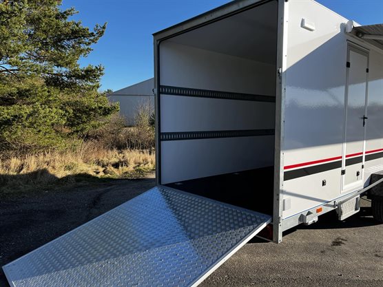 Ny trailer › Erhvervstrailer › Cargo trailer TP 600-3500 Sport Transport Caravan De-Luxe NU 1Stk 224.500,00 DKK Tilkøb nummerplademed EU symbol uden EU symbol 224.500,- Ikke på lager DKK inkl. moms (vis ekskl. moms) Varenummer: 4231 Book videofremvisningBestil leasingtilbud...eller ring på 86 81 81 64 Tekniske specifikationer Totalvægt 3500 kg Last 2012 kg Ladmål (indv.) 600x200x210 cm Bremser Ja Hjul 13" Aksler 2 Produktfordele Opbygget i sandwich konstruktion Isoleret glasfiber LED lys indvendigt Møbelsæt med madrasser Køjeseng med tilhørende stige Vindue m/rullegardin - mørklægning og fluenet Tagventil med ovenlys Næsehjul Støtteben 4 stk. Opbevaringsrum under madras Ekstra forstærket rampe bag, sidedør med indgang til opholdsrum og transportrum Vandskyllende kassette toilet med 17.5L transportabel tank Håndvask i toilet med brusefunktion klædeskab Køkken installation med 2 gasblus og håndvask med koldt og varmt vand Køleskab både på el og gas 12V og 230V el-installation Gasvarme 4 surringskinner og 6 surringsøjer i transportrum 230V el-installation i transport rum Markise i vognens længde højreside Aluminiums hjulskærme Tagbøjler 12V udendørs lys ved sidedør i front Klapbar trin ved døre Produktbeskrivelse TP Sport transport caravan er en lukket trailer der kan bruges til mange formål. Heriblandt motorsport og som værkstedvogn til den professionelle håndværker, der også har brug for en overnatningsmulighed. Vognen er indrettet med rampe med et stort rum, der kan benyttes til transport og værkstedsopbygning. På siden, finder man en stor markise og sidedøre til brug af indgang til vognen. I fronten af, finder du et opholdsrum med gasblus, håndvask, opbevaringsskab, siddegruppe med plads til 2 som og kan benyttes som seng, køje med stige, lys i opholdsrum og toilet med brusebad. Ekstraudstyr - Opholdsrum: 251x200x210 cm (LxBxH) - Transportrum: 345x200x210 cm (LxBxH) - Gasinstallation med separat gasrum til 2 flasker (Køkken, køleskab og gasvarme) - DOMETIC 60L køleskab både på el og gas - Truma S 3004 gasvarme - Koldt og varmt vand med 5L Truma varmvandsbeholder - Vandskyllende kemisk toilet fra Thetford med 17.5L transportabel tank - 230V LED lys og 4 x dobbeltstikkontakter i transportrum - Markise FIAMMA 4470 Leasingeksempel via Ikano Bank over 60 mdr. (ekskl. moms): Priseksempel: 172.000,- kr. Udbetaling: 34.400,- kr. Ydelse pr. md.: 3.017,- kr. Restværdi 5%: 8.600,- kr. Med forbehold for kreditgodkendelse og tastefejl. TP 600-3500 Sport Transport Caravan De-Luxe 224.500,- DKK - + 224.500,- DKK inkl. moms (vis ekskl. moms) Læg i kurv Se alternative modeller 66.725,- DKKTP 300-2000 cargotrailer m/rampe og sidedør 65.995,- DKKTP 360-2000 cargotrailer m/døre og sidedør 70.995,- DKKTP 360-2000 cargotrailer m/rampe og sidedør 69.495,- DKKTP 420-2700 cargotrailer m/døre SÆRTILBUDFØR 72.995,- DKKNU 67.995,- DKKTP 420-2700 cargotrailer m/døre og sidedør SÆRTILBUDFØR 76.995,- DKKNU 69.995,- DKKTP 420-2700 cargotrailer m/rampe og sidedør SÆRTILBUDFØR 79.995,- DKKNU 67.995,- DKKTP 420-2700 cargotrailer m/rampe, sidedør og hjul under vognen SÆRTILBUDFØR 81.995,- DKKNU 75.995,- DKKTP 500-2700 cargotrailer m/døre og sidedør 86.495,- DKKTP 500-2700 cargotrailer m/rampe og sidedør SÆRTILBUDFØR 89.995,- DKKNU 79.995,- DKKTP 500-3500 cargotrailer m/døre og sidedør 79.995,- DKKTP 550-2700 cargotrailer m/døre og sidedør 83.400,- DKKTP 550-2700 cargotrailer m/rampe og sidedør SÆRTILBUDFØR 90.305,- DKKNU 84.305,- DKKTP 550-3500 cargotrailer m/døre og sidedør SÆRTILBUDFØR 103.125,- DKKNU 93.125,- DKKTP 600-3000 cargotrailer m/rampe og sidedør SÆRTILBUDFØR 103.995,- DKKNU 93.995,- DKKTP 600-3500 cargotrailer m/døre og sidedør SÆRTILBUDFØR 109.975,- DKKNU 103.975,- DKKTP 600-3500 cargotrailer m/rampe og sidedør 76.415,- DKKTP 360-2700 cargotrailer m/døre og stor sideklap 59.495,- DKKTP 300-2000 cargotrailer m/døre 60.995,- DKKTP 300-2000 cargotrailer m/rampe 66.725,- DKK TP 300-2000 cargotrailer m/rampe og sidedør 65.995,- DKK TP 360-2000 cargotrailer m/døre og sidedør 70.995,- DKK TP 360-2000 cargotrailer m/rampe og sidedør 69.495,- DKK TP 420-2700 cargotrailer m/døre FØR 72.995,- DKKNU 67.995,- DKK TP 420-2700 cargotrailer m/døre og sidedør FØR 76.995,- DKKNU 69.995,- DKK TP 420-2700 cargotrailer m/rampe og sidedør FØR 79.995,- DKKNU 67.995,- DKK TP 420-2700 cargotrailer m/rampe, sidedør og hjul under vognen FØR 81.995,- DKKNU 75.995,- DKK TP 500-2700 cargotrailer m/døre og sidedør 86.495,- DKK TP 500-2700 cargotrailer m/rampe og sidedør FØR 89.995,- DKKNU 79.995,- DKK TP 500-3500 cargotrailer m/døre og sidedør 79.995,- DKK TP 550-2700 cargotrailer m/døre og sidedør 83.400,- DKK TP 550-2700 cargotrailer m/rampe og sidedør FØR 90.305,- DKKNU 84.305,- DKK TP 550-3500 cargotrailer m/døre og sidedør FØR 103.125,- DKKNU 93.125,- DKK TP 600-3000 cargotrailer m/rampe og sidedør FØR 103.995,- DKKNU 93.995,- DKK TP 600-3500 cargotrailer m/døre og sidedør FØR 109.975,- DKKNU 103.975,- DKK TP 600-3500 cargotrailer m/rampe og sidedør 76.415,- DKK TP 360-2700 cargotrailer m/døre og stor sideklap 59.495,- DKK TP 300-2000 cargotrailer m/døre 60.995,- DKK TP 300-2000 cargotrailer m/rampe Nyttig viden Finansieringsløsninger erhvervForsikring af trailerFør du tager din trailer i brugTempo 100 godkendelse til trailerVægtafgift på trailerTrailerkørekort?Kørsel med trailer