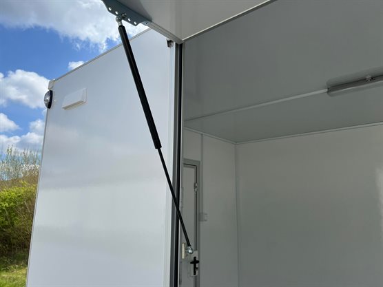 Velisoleret og langtidsholdbar vogn, med sandwichkonstruerede og isolerede sider og tag (30 mm) beklædt med hvid glasfiber ind- og udvendig