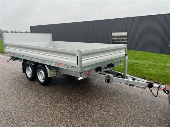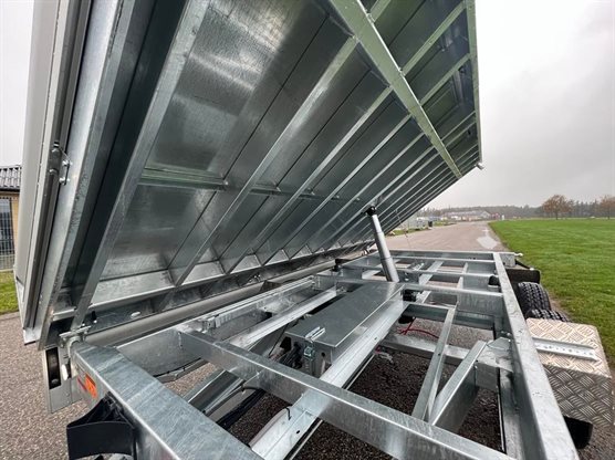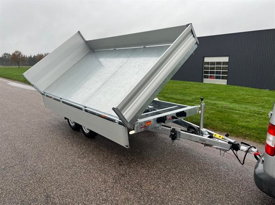 Trip 3500-400 er en trailer med 3-vejs tippelad til 12 V med 40 cm høje alusider og stålbund. Traileren har 70 cm pendelbagsmæk, svingbare støtteben, plads til ramper under lad, samt kraftigt næsehjul.