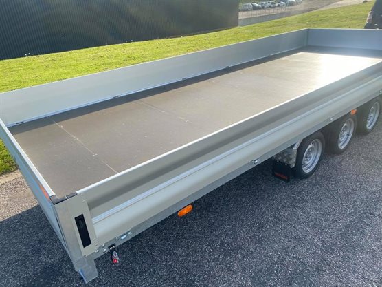 Ny trailer › Erhvervstrailer › Ladtrailer VZ light 617-3500 ladtrailer m/3 aksler NU 1Stk 62.795,00 DKK Tilkøb nummerplademed EU symbol uden EU symbol Konfigurér denne trailer Har du husket at købe… disse produkter? 112 – Brandslukker m/montering 400,00 DKK Koblingslås kraftig 299,00 DKK - + 112 – Brandslukker m/montering + 400,- i - + Koblingslås kraftig + 299,- i 62.795,- Læg i kurvPå lager DKK inkl. moms (vis ekskl. moms) Varenummer: 5096 Book videofremvisningBestil leasingtilbud...eller ring på 86 81 81 64 Tekniske specifikationer Totalvægt 3500 kg Last 2540 kg Ladmål (indv.) 617x247x35 cm Bremser Ja Hjul 13" Aksler 3 Produktfordele Galvaniseret stål chassis Kraftig finerbund Aluminiumssider 35 cm Alle sider kan nedfældes Surringsbeslag i bund Næsehjul Ekstra bred model Ladhøjde 66 cm Produktbeskrivelse VZ Light 617-3500 3 Aksler VZ Light 617-3500 med 3 aksler er skabt til de tungeste opgaver, hvor stabilitet er afgørende. Med tre aksler får du ekstra jævn vægtfordeling, hvilket giver større sikkerhed og stabilitet, især ved tung last. Det galvaniserede stålchassis og den kraftige finerbund sikrer, at traileren kan holde til krævende brug, mens de 35 cm høje aluminiumssider beskytter din last. Alle sider kan nedfældes for nem af- og pålæsning. Med en totalvægt på 3500 kg og en nyttelast på 2540 kg er denne trailer bygget til at håndtere store mængder materiale. Ladmålet på 617x247x35 cm giver masser af plads, mens ladhøjden på 66 cm sikrer nem håndtering af store laster. De mange tværvanger giver optimal vægtfordeling, og LED-positionslys samt det kraftige næsehjul bidrager til sikkerhed og brugervenlighed. Til professionelle som ikke vil gå ned på kvalitet. Bemærk indregistrering af trailer koster 790 kr. inkl. moms. VZ light 617-3500 ladtrailer m/3 aksler 62.795,- DKK - + 62.795,- DKK inkl. moms (vis ekskl. moms) Læg i kurv Se alternative modeller 38.995,- DKKVZ light 417-2700 ladtrailer m/boogie 47.495,- DKKVZ light 617-2700 ladtrailer bred 44.995,- DKKVZ light 617-2700 ladtrailer smal 44.995,- DKKVZ light 517-2700 ladtrailer m/boogie 78.950,- DKKVZ light 817-3500 ladtrailer m/3 aksler 38.995,- DKK VZ light 417-2700 ladtrailer m/boogie 47.495,- DKK VZ light 617-2700 ladtrailer bred 44.995,- DKK VZ light 617-2700 ladtrailer smal 44.995,- DKK VZ light 517-2700 ladtrailer m/boogie 78.950,- DKK VZ light 817-3500 ladtrailer m/3 aksler Nyttig viden Finansieringsløsninger erhvervForsikring af trailerFør du tager din trailer i brugGuide til køb af trailer